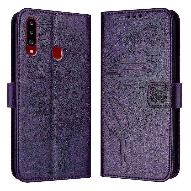 Για Samsung Galaxy A20s ανάγλυφη πεταλούδα δερμάτινη θήκη τηλεφώνου (σκούρο μοβ)