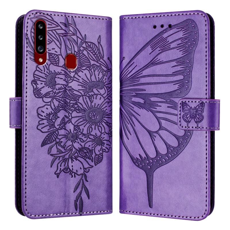 Για Samsung Galaxy A20s ανάγλυφη πεταλούδα δερμάτινη θήκη τηλεφώνου (ανοιχτό μοβ)