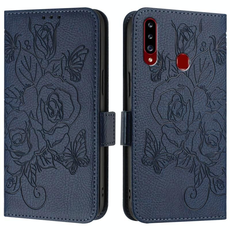 Για Samsung Galaxy A20s ανάγλυφο Rose RFID Anti-theft δερμάτινη θήκη τηλεφώνου (σκούρο μπλε)