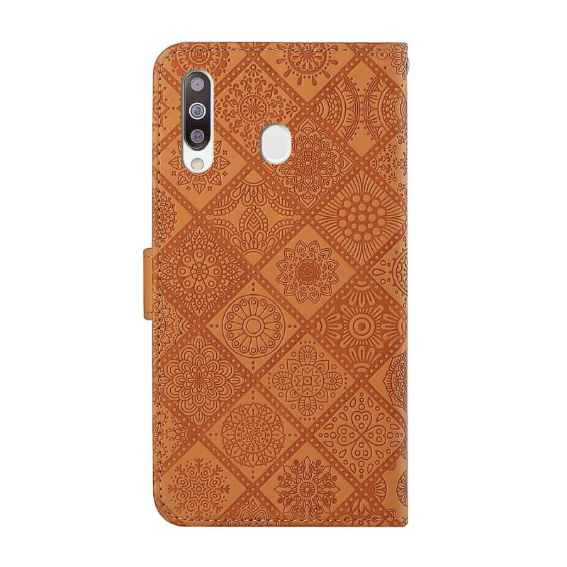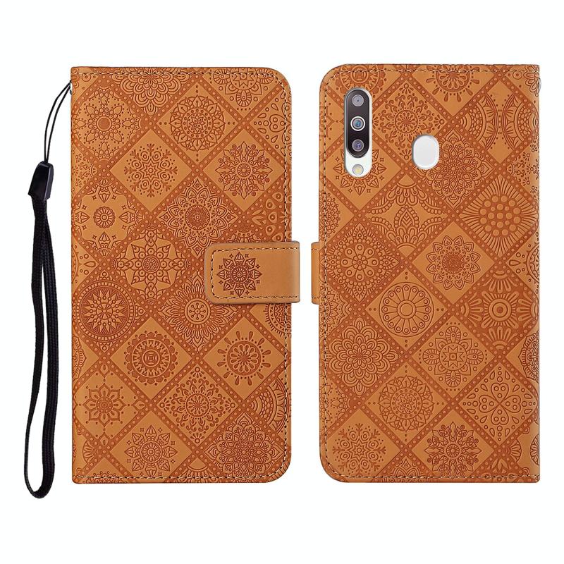 For Samsung Galaxy A20s Ethnic Style Embossed Pattern Horizontal Flip Leather Case with Holder & Card Slots & Wallet & Lanyard(Brown)