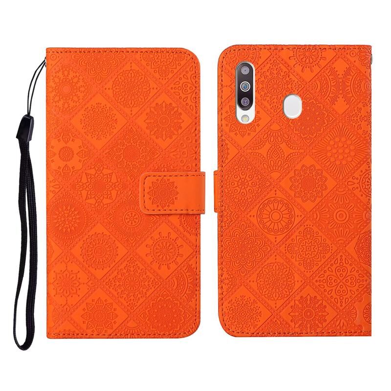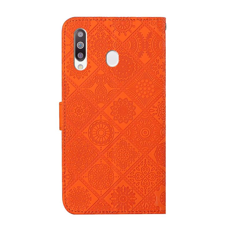 For Samsung Galaxy A20s Ethnic Style Embossed Pattern Horizontal Flip Leather Case with Holder & Card Slots & Wallet & Lanyard(Orange)