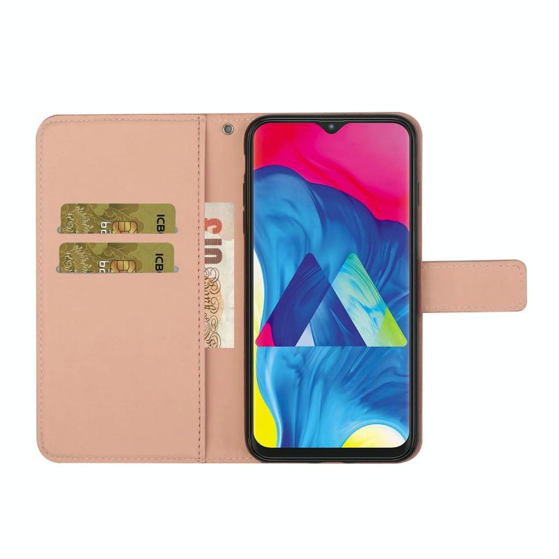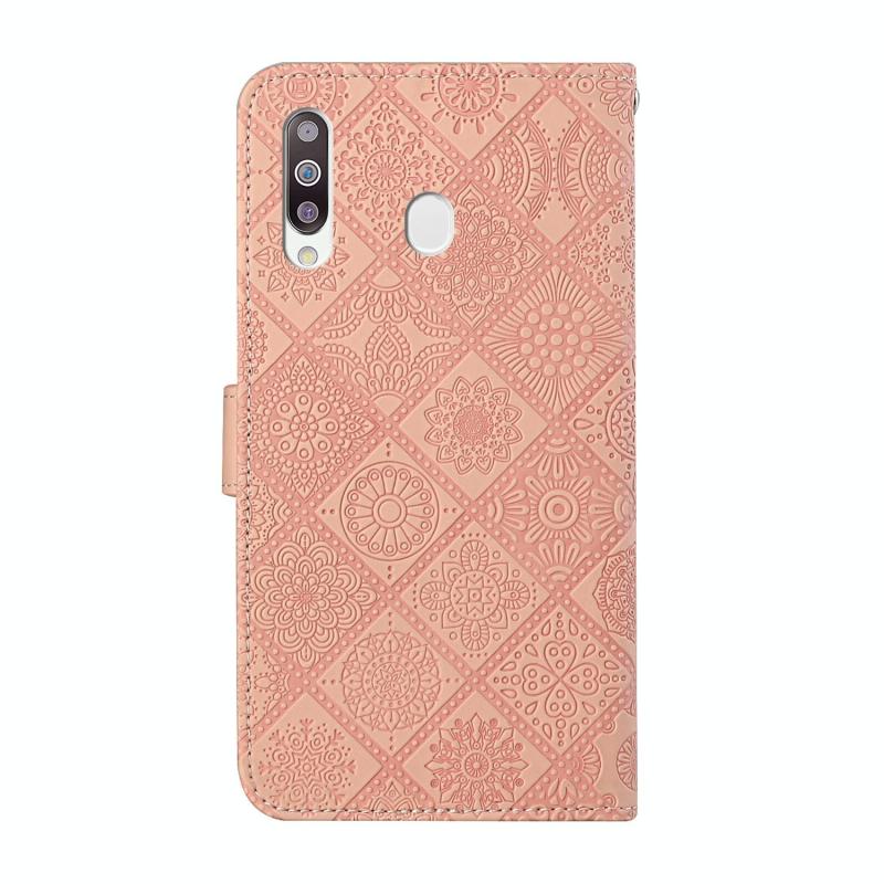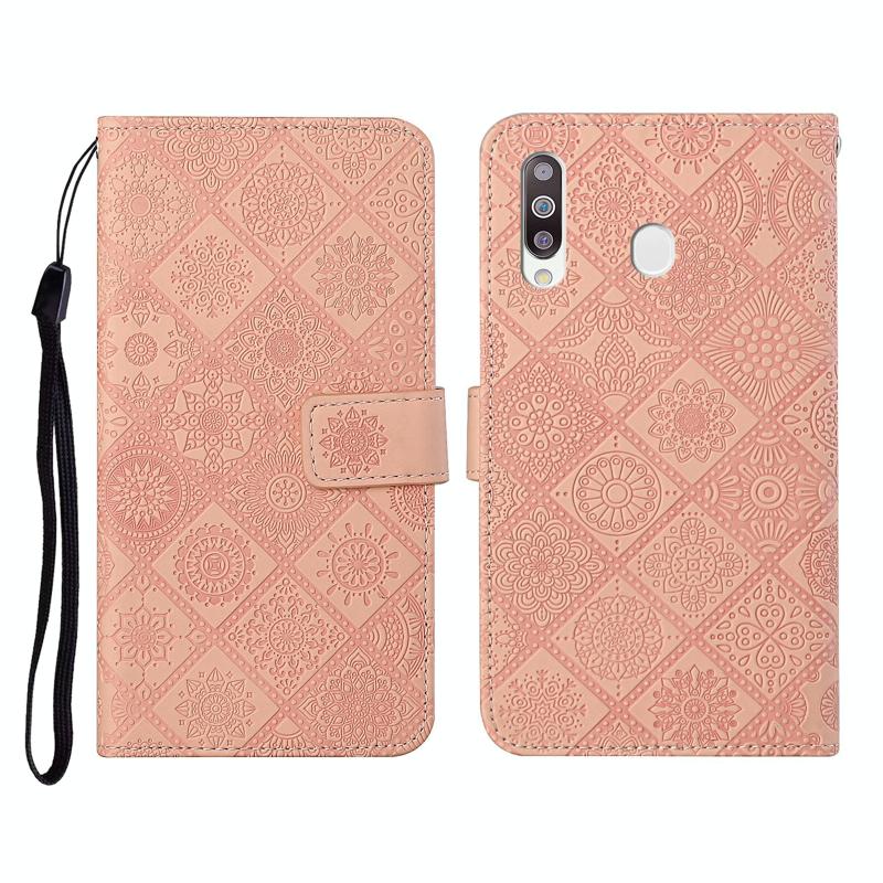 For Samsung Galaxy A20s Ethnic Style Embossed Pattern Horizontal Flip Leather Case with Holder & Card Slots & Wallet & Lanyard(Pink)