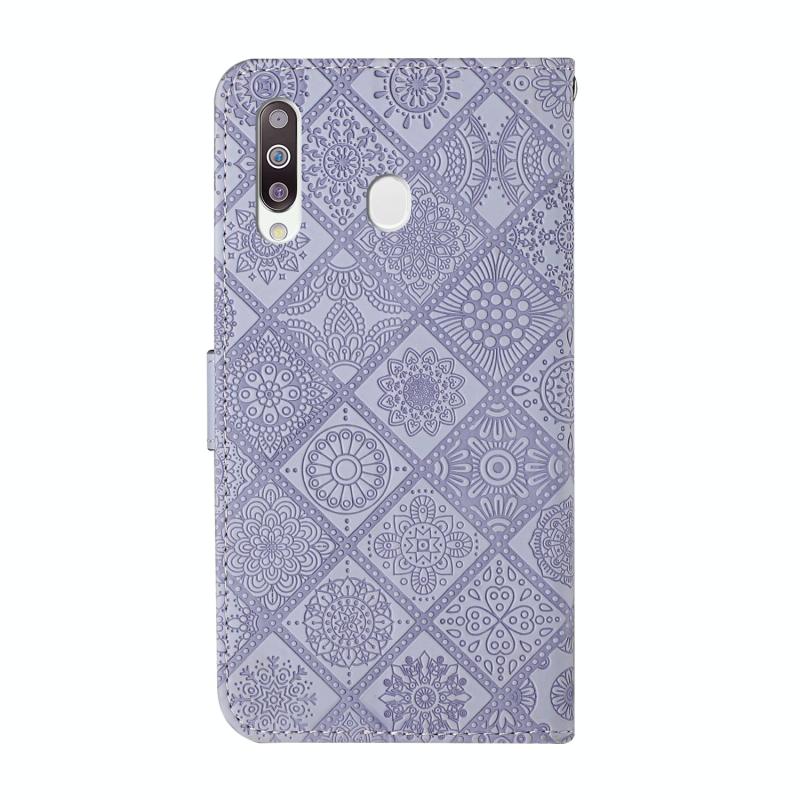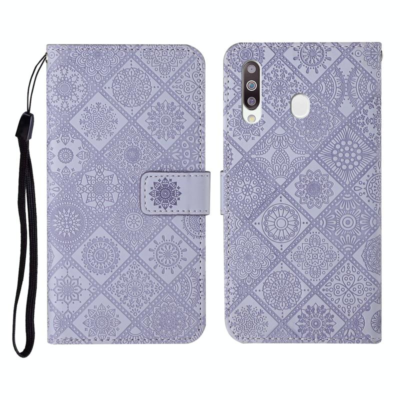 For Samsung Galaxy A20s Ethnic Style Embossed Pattern Horizontal Flip Leather Case with Holder & Card Slots & Wallet & Lanyard(Purple)