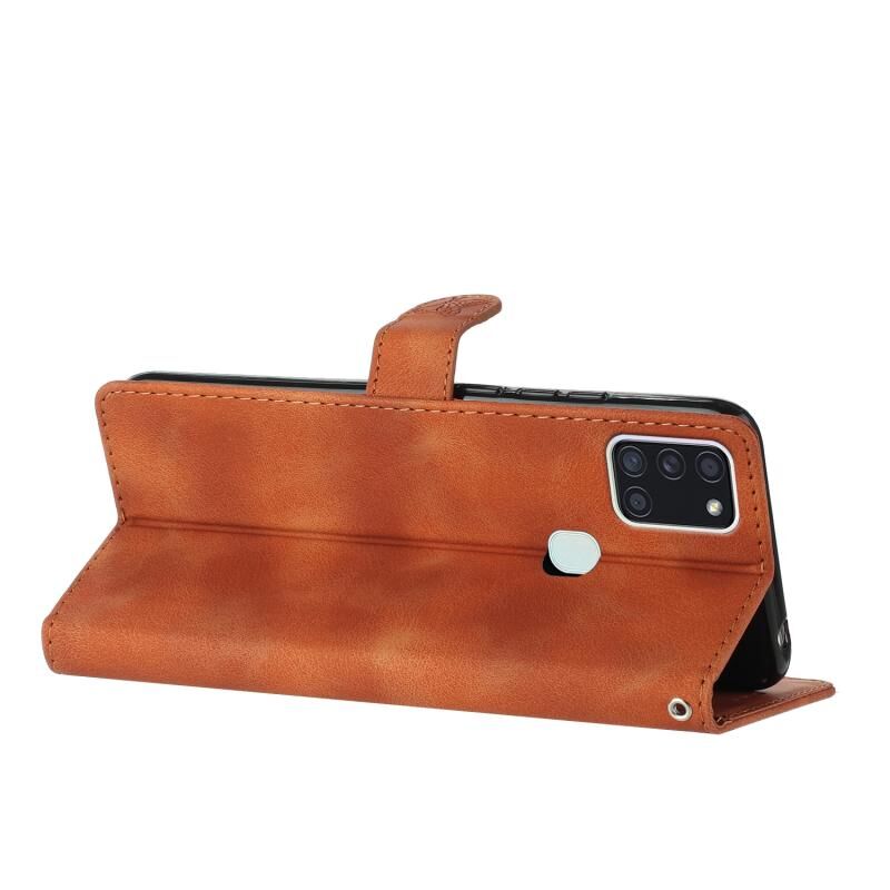 Για Samsung Galaxy A20s λουλούδι πεταλούδα ανάγλυφο μοτίβο δερμάτινη θήκη τηλεφώνου (Καφέ)