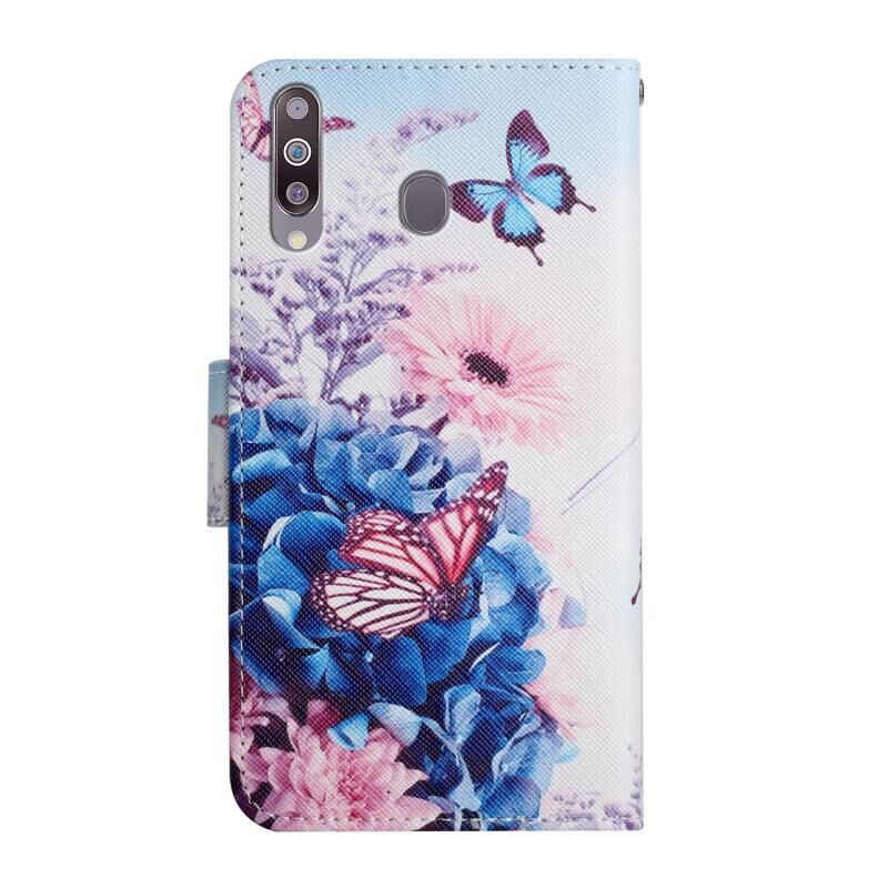 Θήκη Samsung Galaxy A20s από Δέρμα με Οριζόντιο Άνοιγμα, Βαμμένο Μοτίβο, με Θήκη & Υποδοχή Κάρτας & Πορτοφόλι (Πεταλούδα Μωβ)