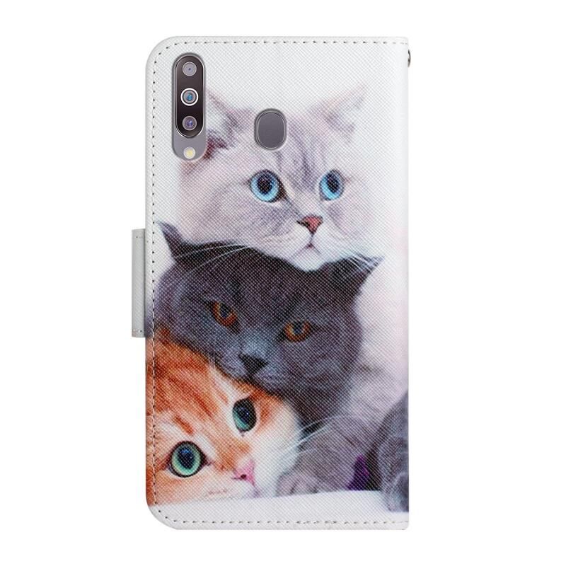 Θήκη Samsung Galaxy A20s από Δέρμα με Οριζόντιο Άνοιγμα, Βαμμένο Μοτίβο, με Θήκη & Υποδοχή Κάρτας & Πορτοφόλι (Τρία Γατάκια)