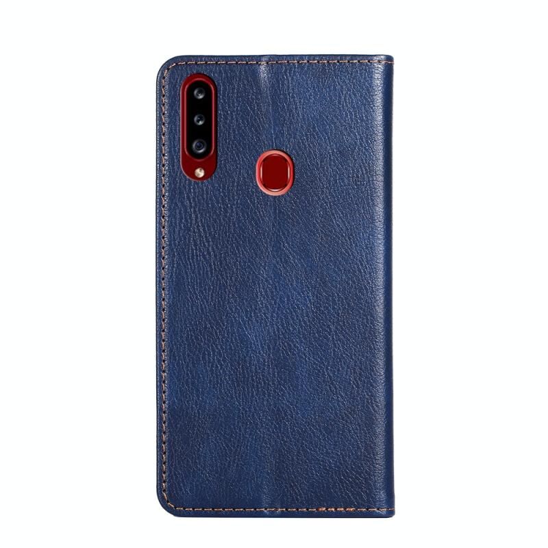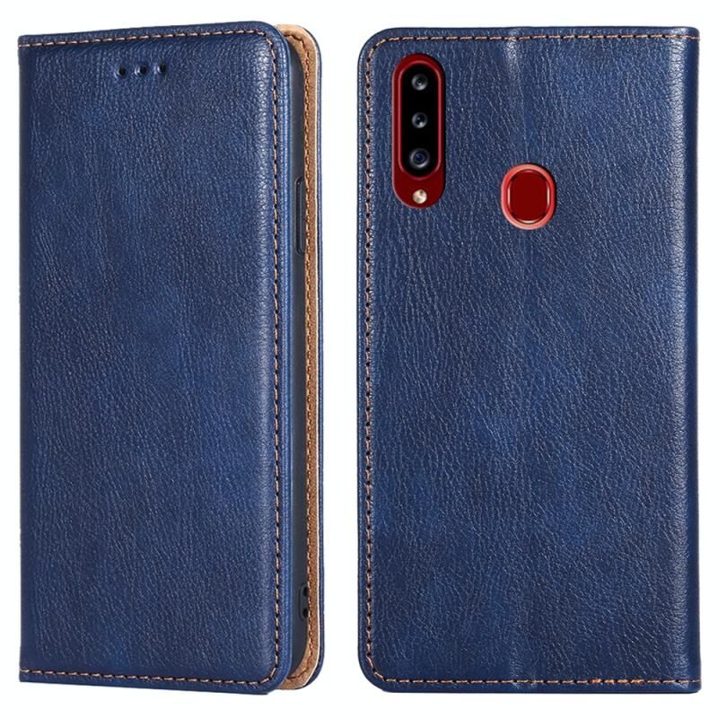 Για Samsung Galaxy A20s PU + TPU γυαλιστερό λάδι στερεό χρώμα μαγνητική οριζόντια Flip δερμάτινη θήκη με υποδοχή & υποδοχή για κάρτες & πορτοφόλι (μπλε)