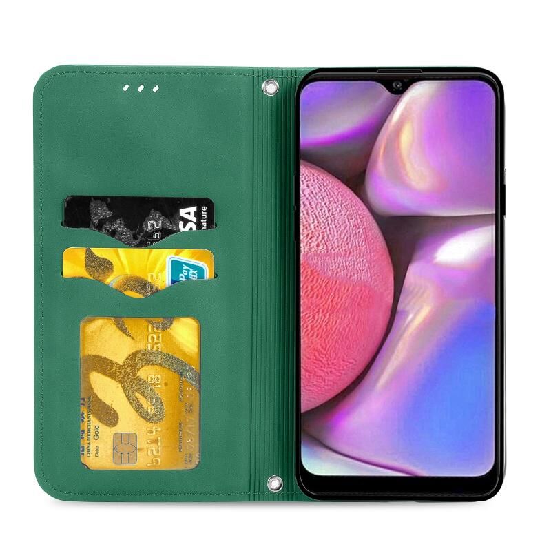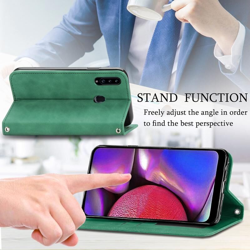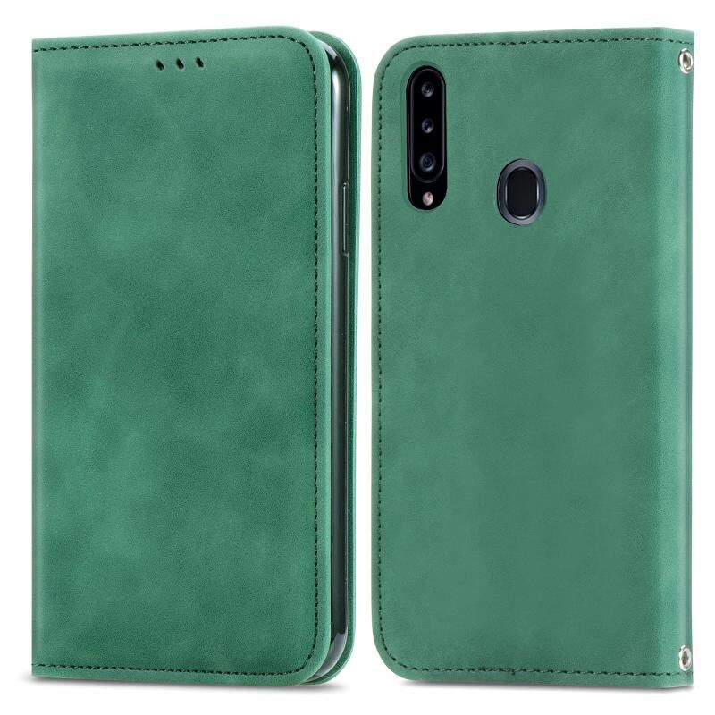 Για Samsung Galaxy A20s Retro Skin Feel Business μαγνητική οριζόντια Flip δερμάτινη θήκη με υποδοχές για κάρτες & πορτοφόλι & πλαίσιο φωτογραφιών (πράσινο)
