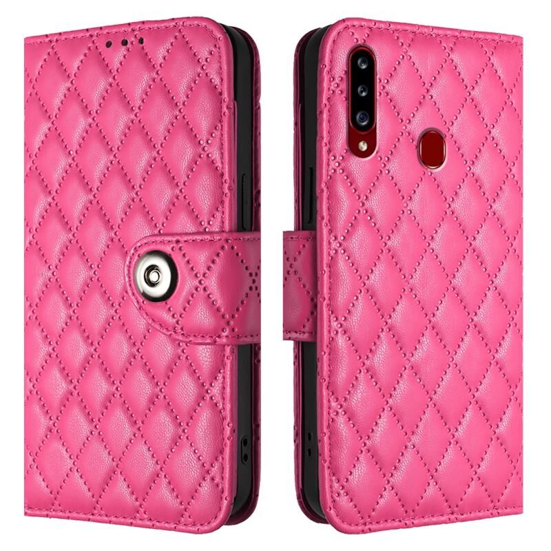 Για Samsung Galaxy A20s Rhombic υφή Flip δερμάτινη θήκη τηλεφώνου με κορδόνι (Rose Red)