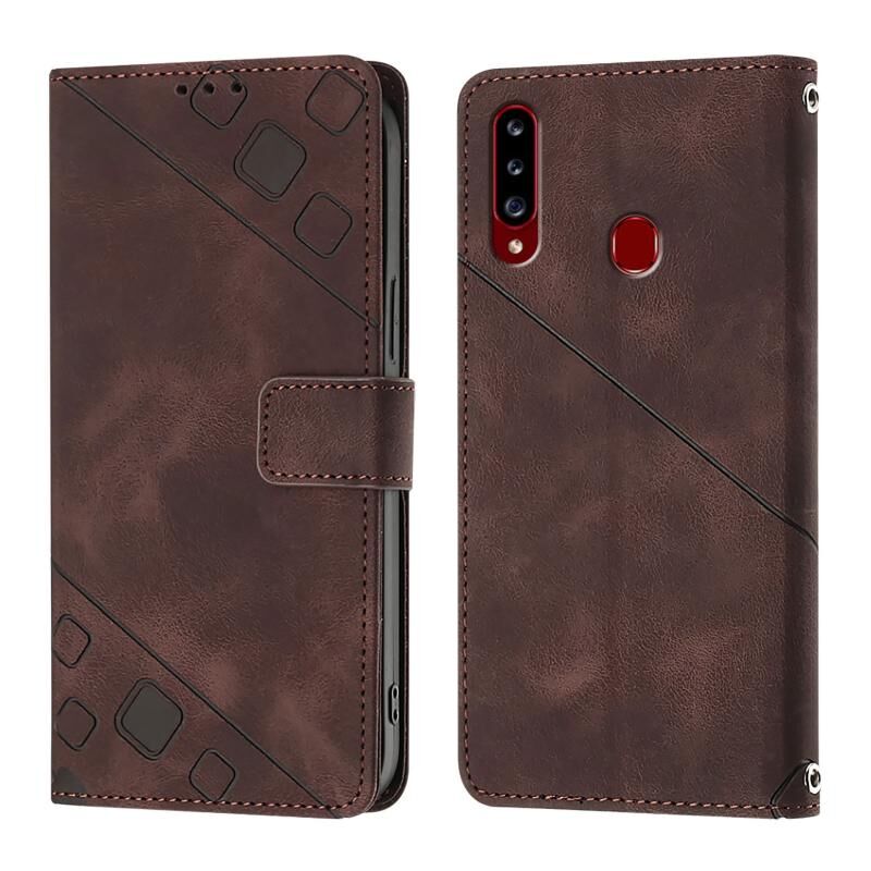 Για Samsung Galaxy A20s δέρμα αίσθηση ανάγλυφο δέρμα υπόθεση τηλεφώνου (καφέ)