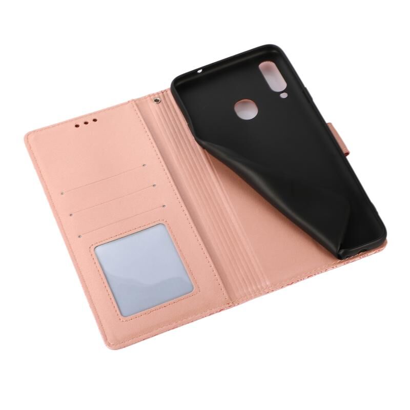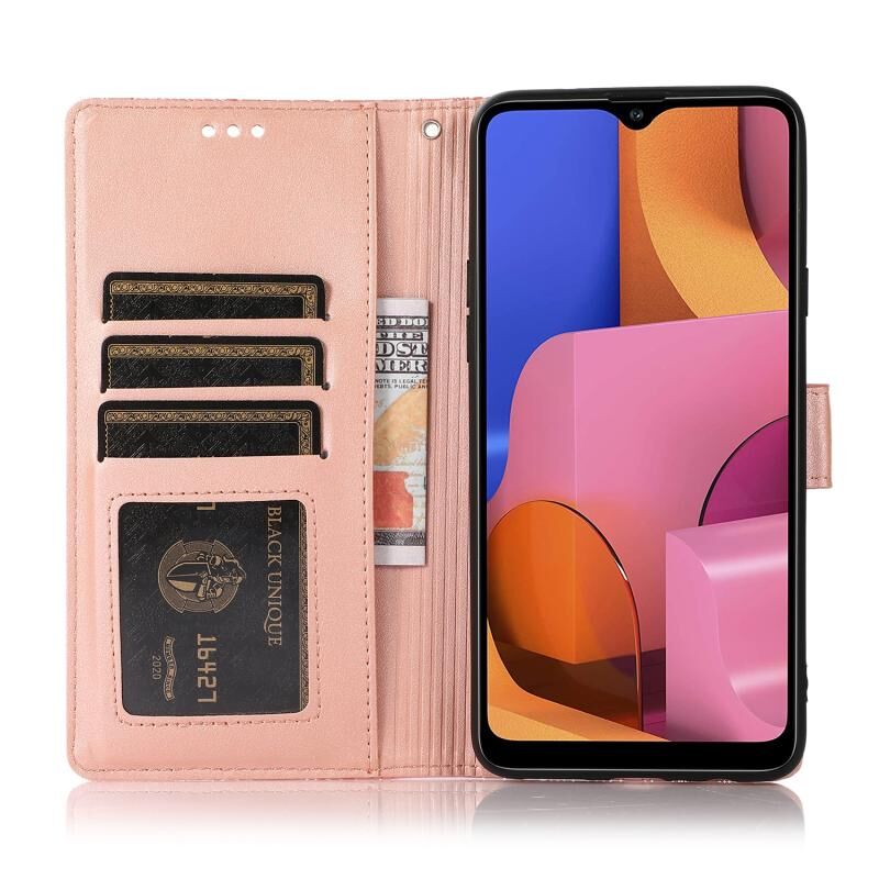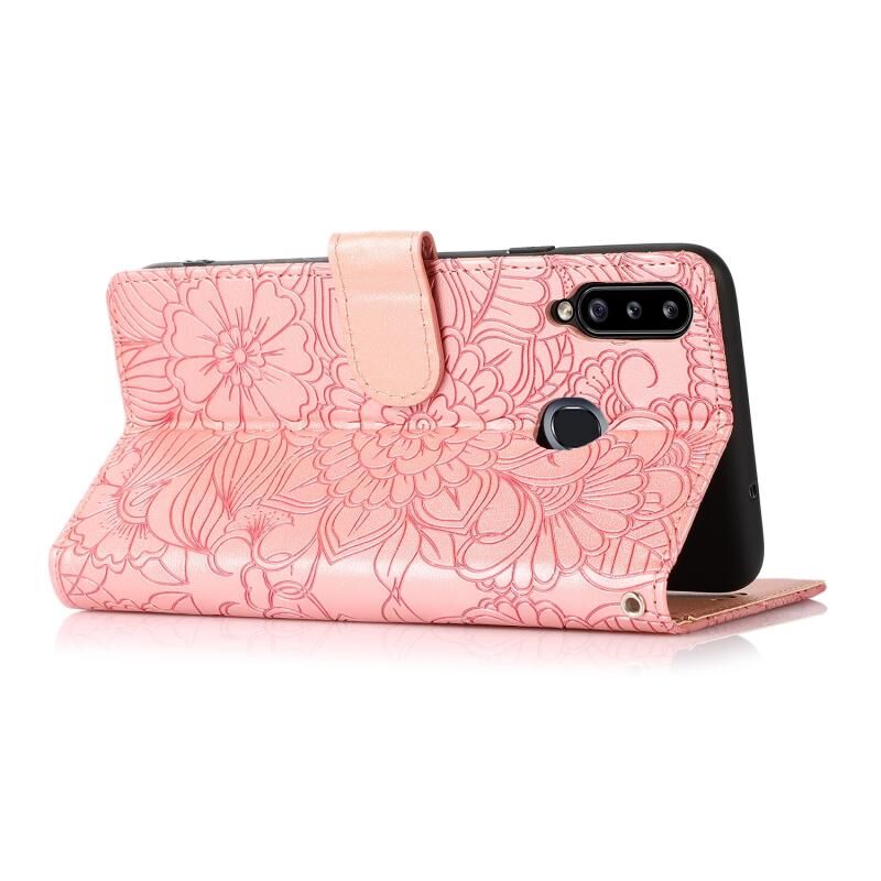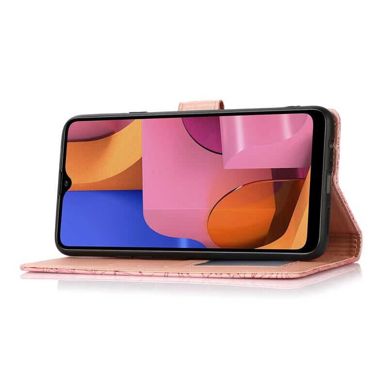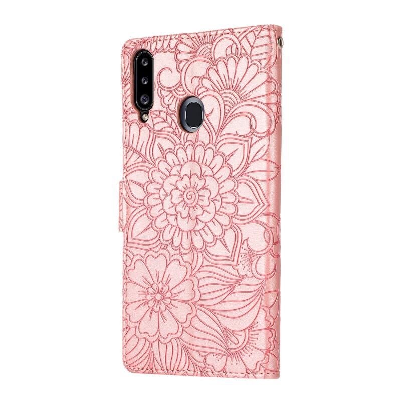 Για Samsung Galaxy A20s δέρμα αίσθηση ανάγλυφο ηλιοτρόπιο οριζόντια Flip δερμάτινη θήκη με υποδοχές για κάρτες & θήκες & πορτοφόλι & κορδόνι (Rose Gold)