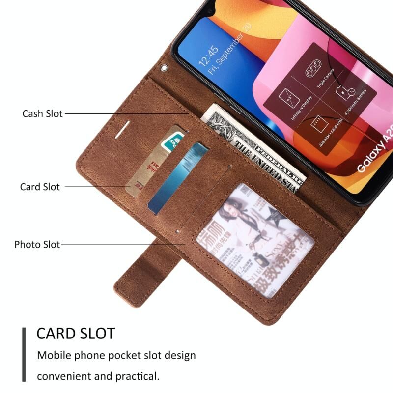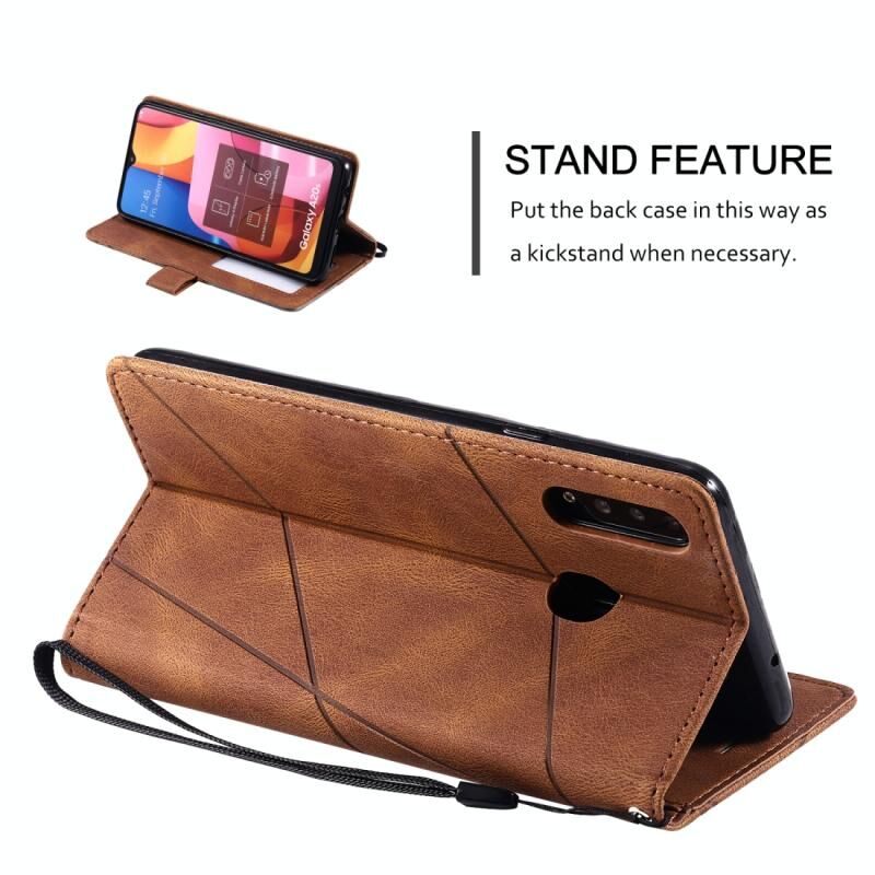 Για Samsung Galaxy A20s δέρμα αίσθηση Splicing οριζόντια Flip δερμάτινη θήκη με υποδοχές για κάρτες & θήκες & πορτοφόλι & πλαίσιο φωτογραφιών (Καφέ)