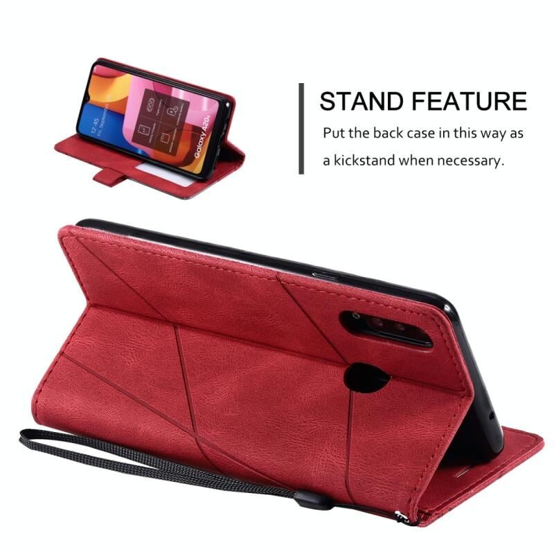 Για Samsung Galaxy A20s δέρμα αίσθηση Splicing οριζόντια Flip δερμάτινη θήκη με υποδοχές για κάρτες & θήκες & πορτοφόλι & πλαίσιο φωτογραφιών (Κόκκινο)