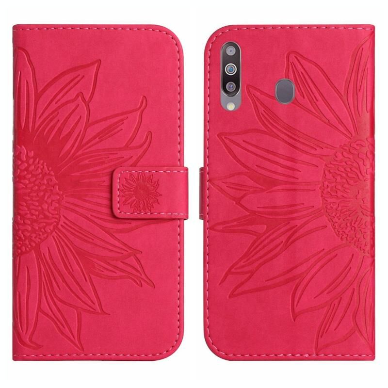 Για το Samsung Galaxy A20S δέρμα αίσθηση Sun Flower μοτίβο Flip δέρμα τηλέφωνο υπόθεση με κορδόνι (Rose Red)