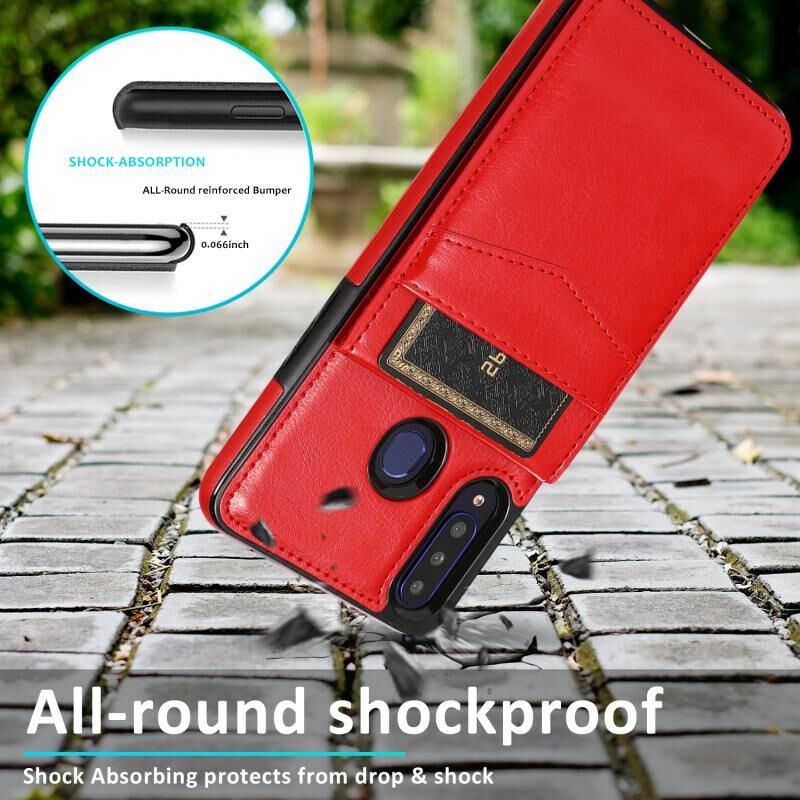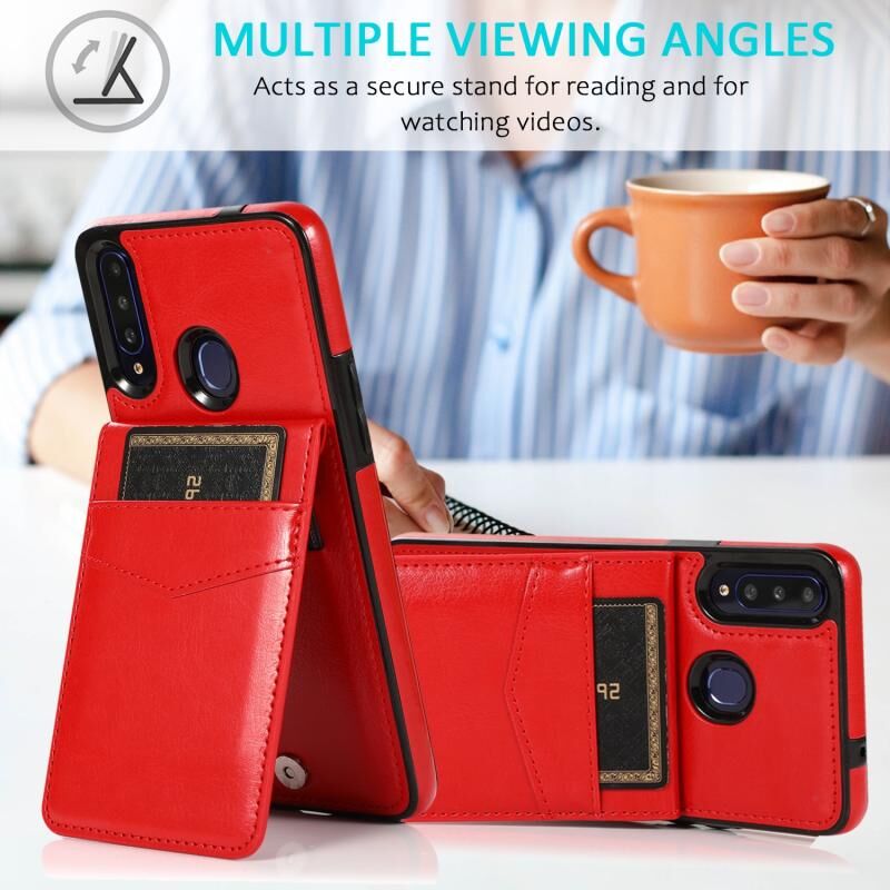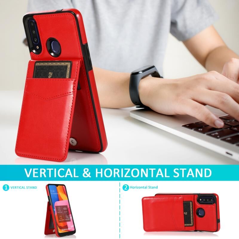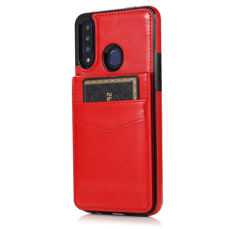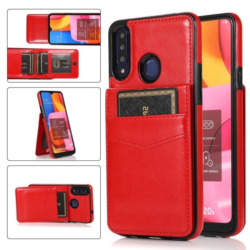 Για Samsung Galaxy A20s Αμιγές χρώμα PC + TPU προστατευτική θήκη με θήκη & υποδοχές για κάρτες (κόκκινο)