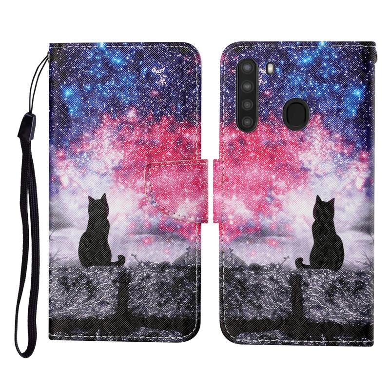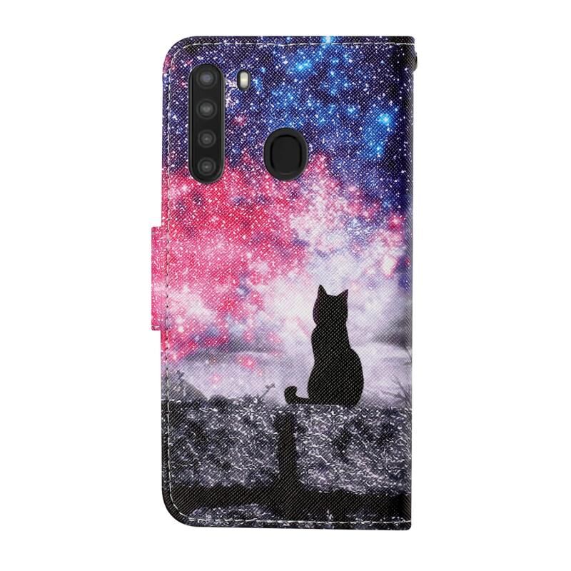 Θήκη Samsung Galaxy A21 με σχέδιο πολύχρωμης ζωγραφικής, οριζόντια δερμάτινη θήκη με βάση στήριξης, θήκες καρτών, πορτοφόλι & λουρί (Αστρόγατα)