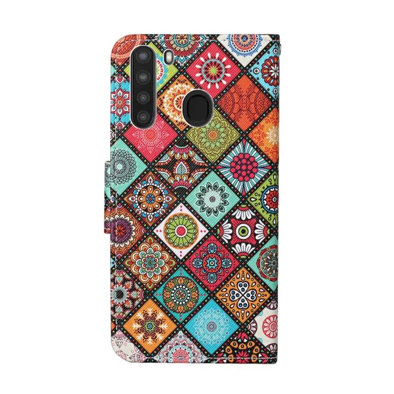 Θήκη Samsung Galaxy A21 με έγχρωμο σχέδιο, οριζόντια δερμάτινη θήκη με βάση στήριξης & υποδοχές καρτών & πορτοφόλι (Κόκκινο)