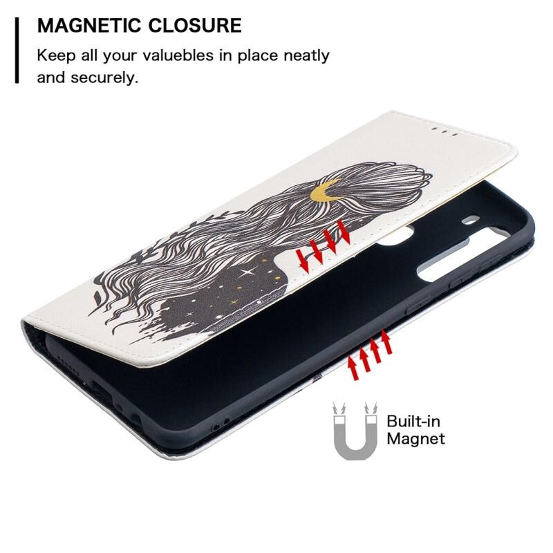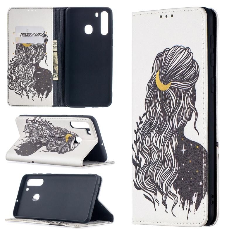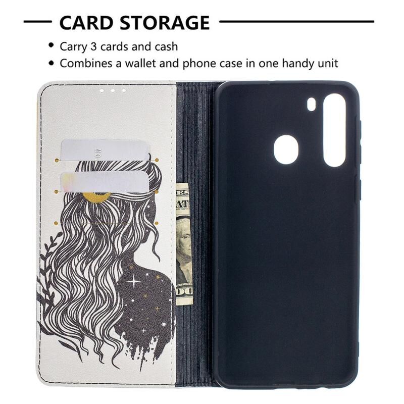 Θήκη Samsung Galaxy A21, πολύχρωμη με σχέδια, αόρατη μαγνητική οριζόντια από δερματίνη PU με βάση & θήκες για κάρτες & πορτοφόλι (Κόκκινο)
