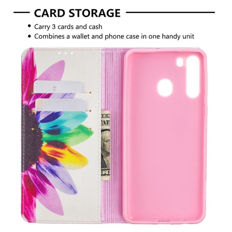 Θήκη Samsung Galaxy A21 με πολύχρωμο σχέδιο, αόρατο μαγνητικό, οριζόντιο flip από δερματίνη PU με βάση & θήκες για κάρτες & πορτοφόλι (Κόκκινο)