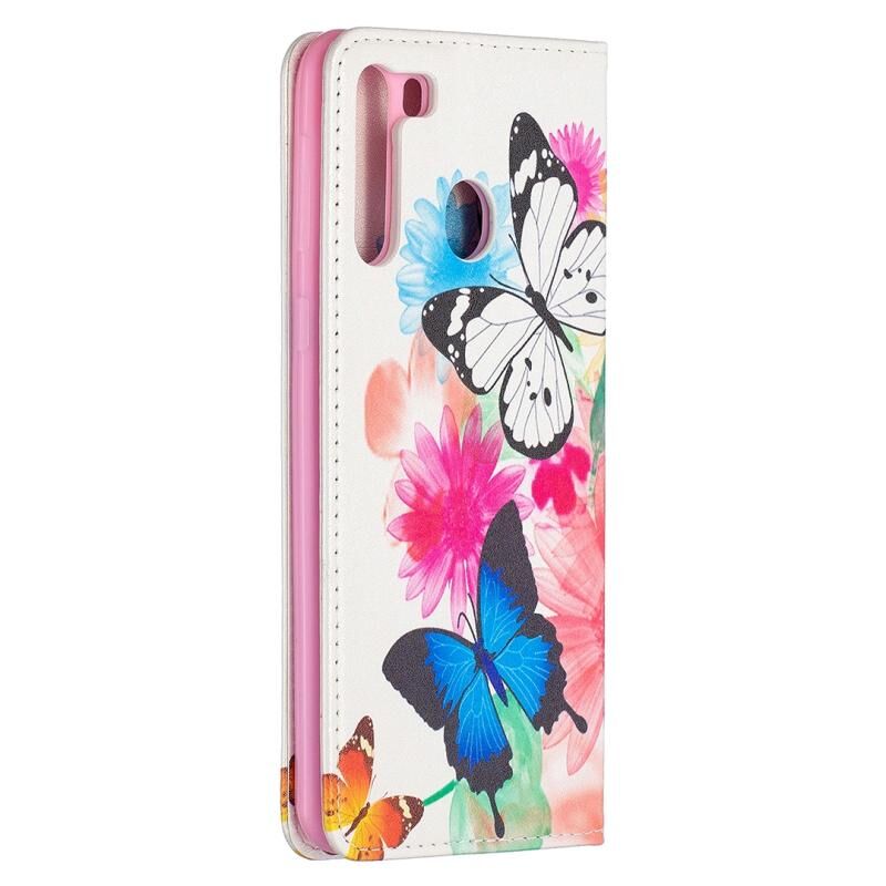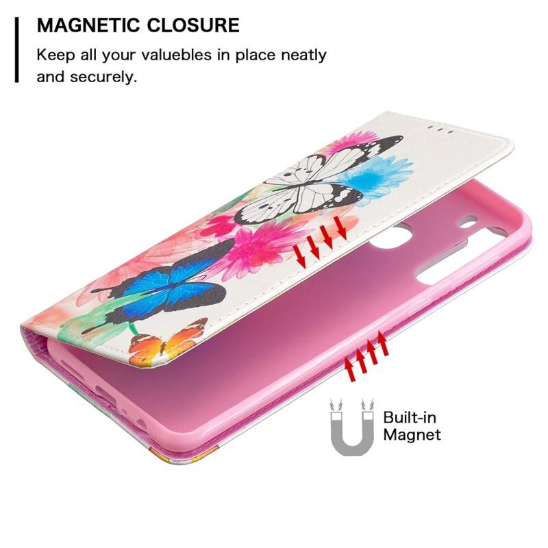 Θήκη Samsung Galaxy A21 με πολύχρωμο σχέδιο, αόρατο μαγνητικό, οριζόντιο flip από δερματίνη PU με βάση & θήκες για κάρτες & πορτοφόλι (Δύο Πεταλούδες)