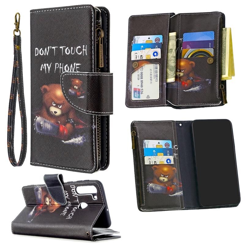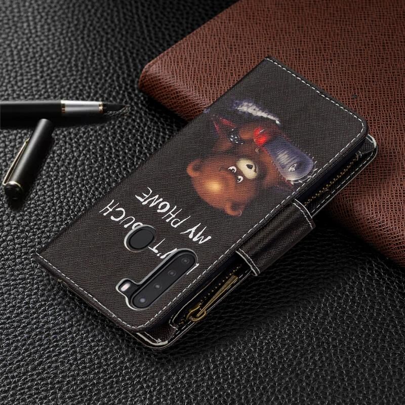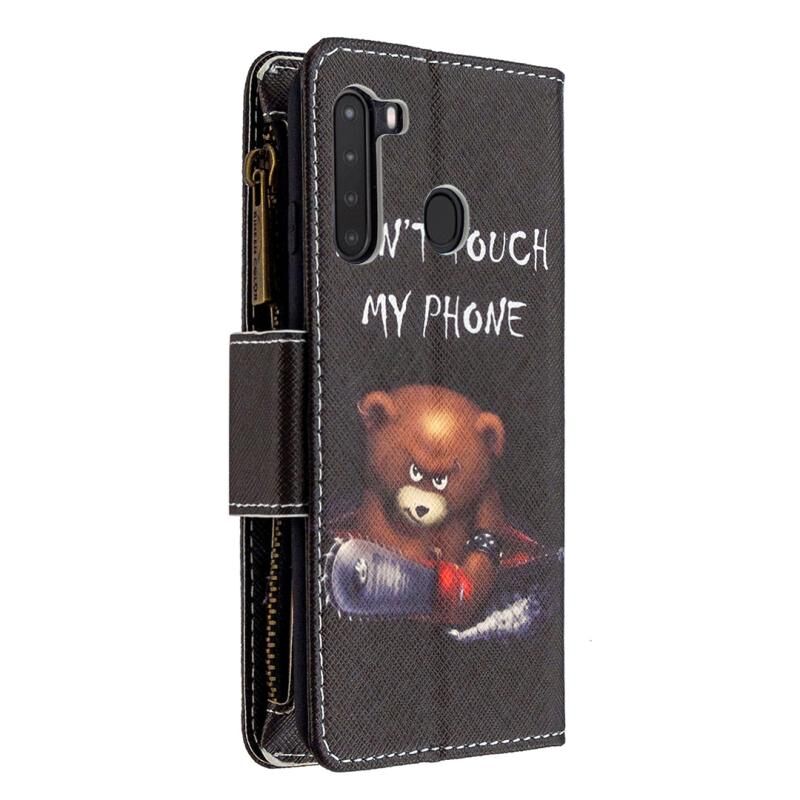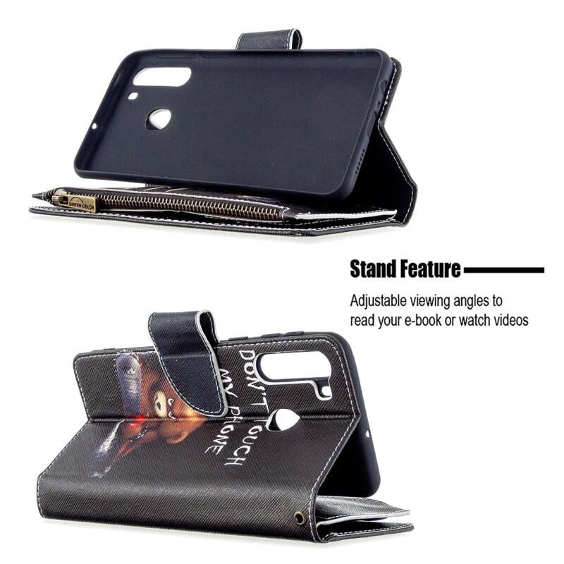 Θήκη Samsung Galaxy A21 με σχέδιο πολύχρωμης ζωγραφικής, οριζόντια, δερμάτινη με φερμουάρ, με βάση & θήκες για κάρτες & πορτοφόλι (Κόκκινο)