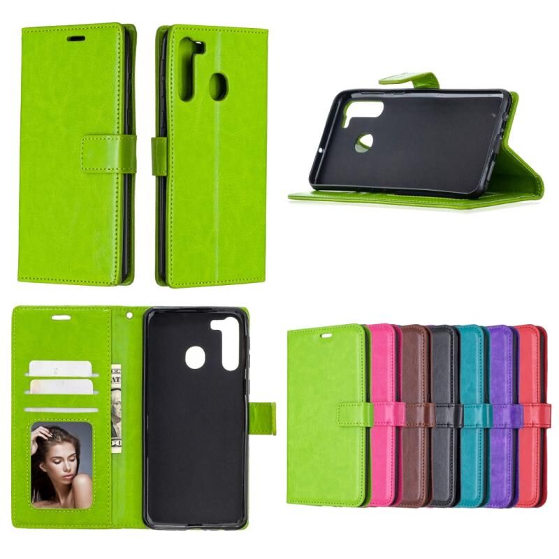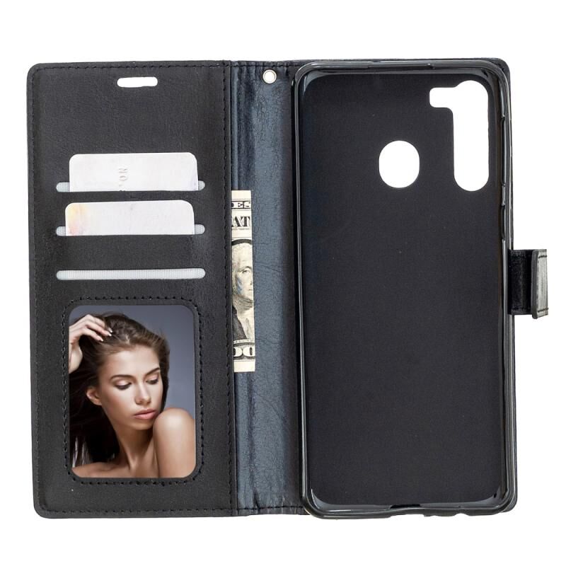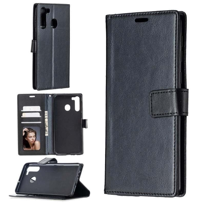 Για Samsung Galaxy A21 Crazy Horse Υφή οριζόντια Flip δερμάτινη θήκη με θήκη & υποδοχές για κάρτες & πορτοφόλι & κορνίζα φωτογραφιών (Μαύρο)