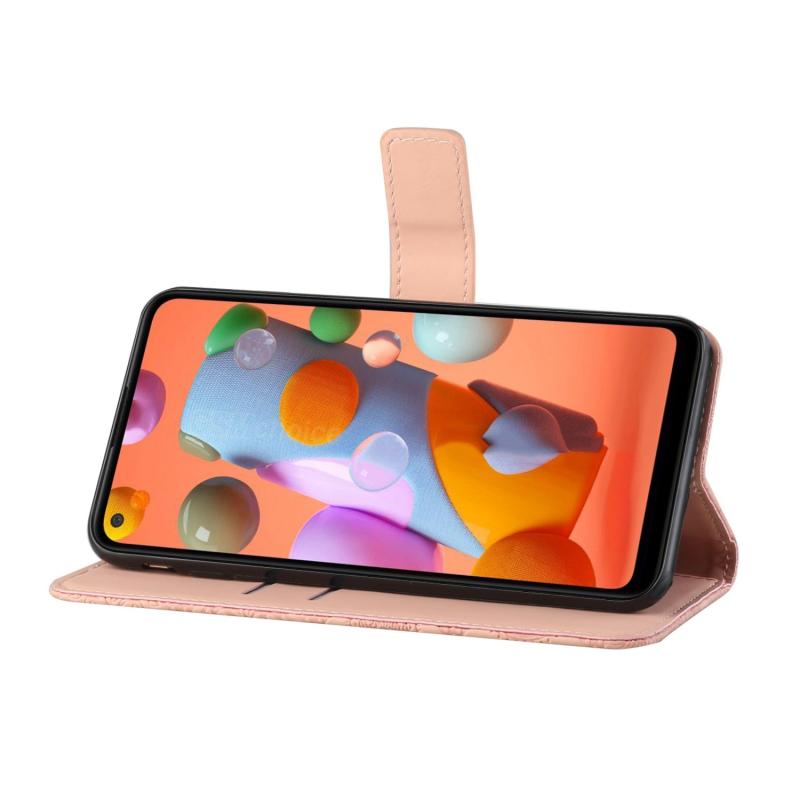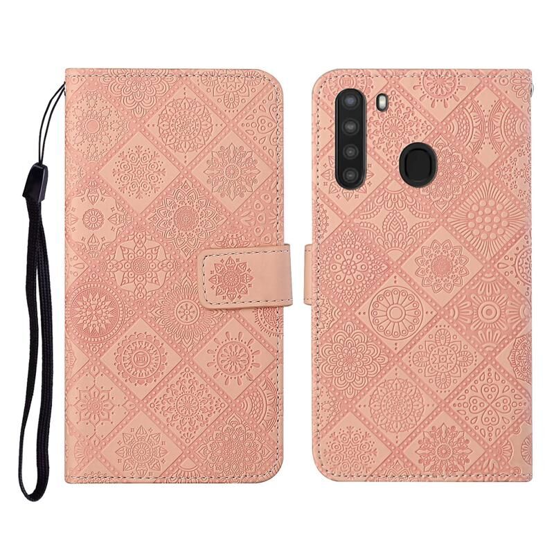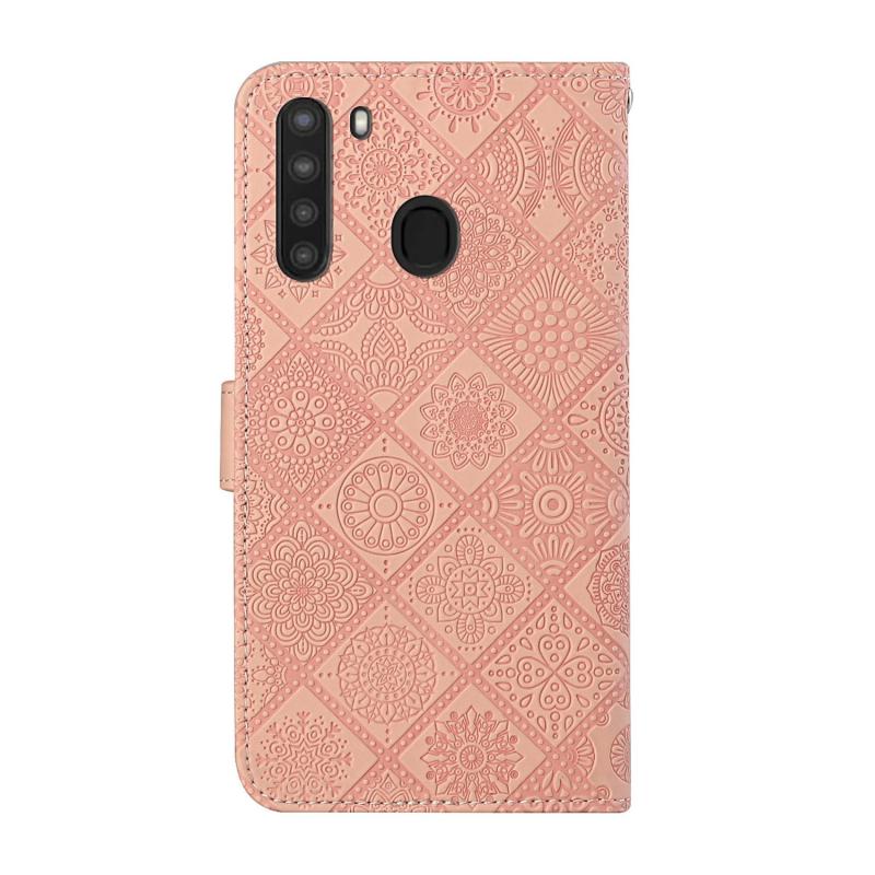 For Samsung Galaxy A21 Ethnic Style Embossed Pattern Horizontal Flip Leather Case with Holder & Card Slots & Wallet & Lanyard(Pink)