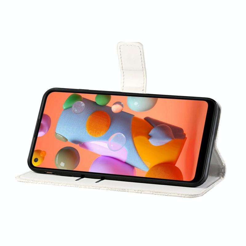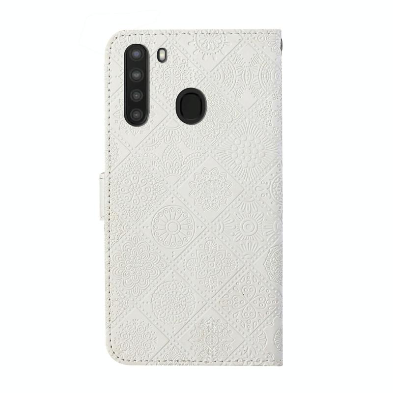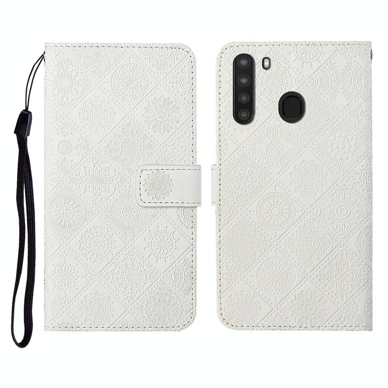 For Samsung Galaxy A21 Ethnic Style Embossed Pattern Horizontal Flip Leather Case with Holder & Card Slots & Wallet & Lanyard(White)