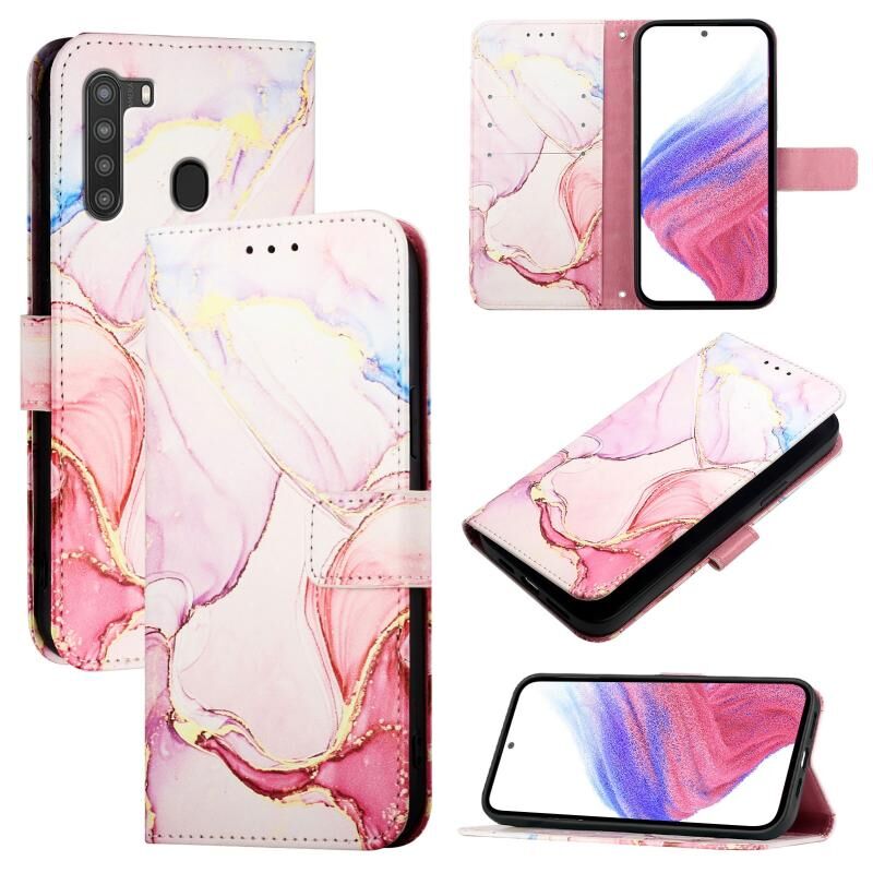 Θήκη τηλεφώνου Samsung Galaxy A21 EU PT003 με σχέδιο μάρμαρου, δερμάτινη, αναδιπλούμενη (Χρυσό ροζ)