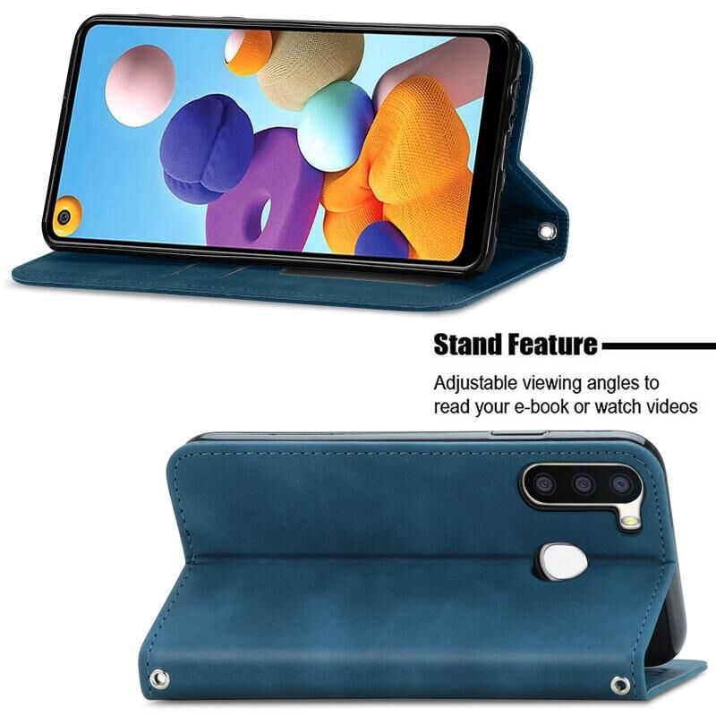 Για το Samsung Galaxy A21 (ΕΕ) Retro δέρμα Feel Business μαγνητική οριζόντια Flip δερμάτινη θήκη με θήκη & υποδοχές για κάρτες & πορτοφόλι & πλαίσιο φωτογραφιών (μπλε)