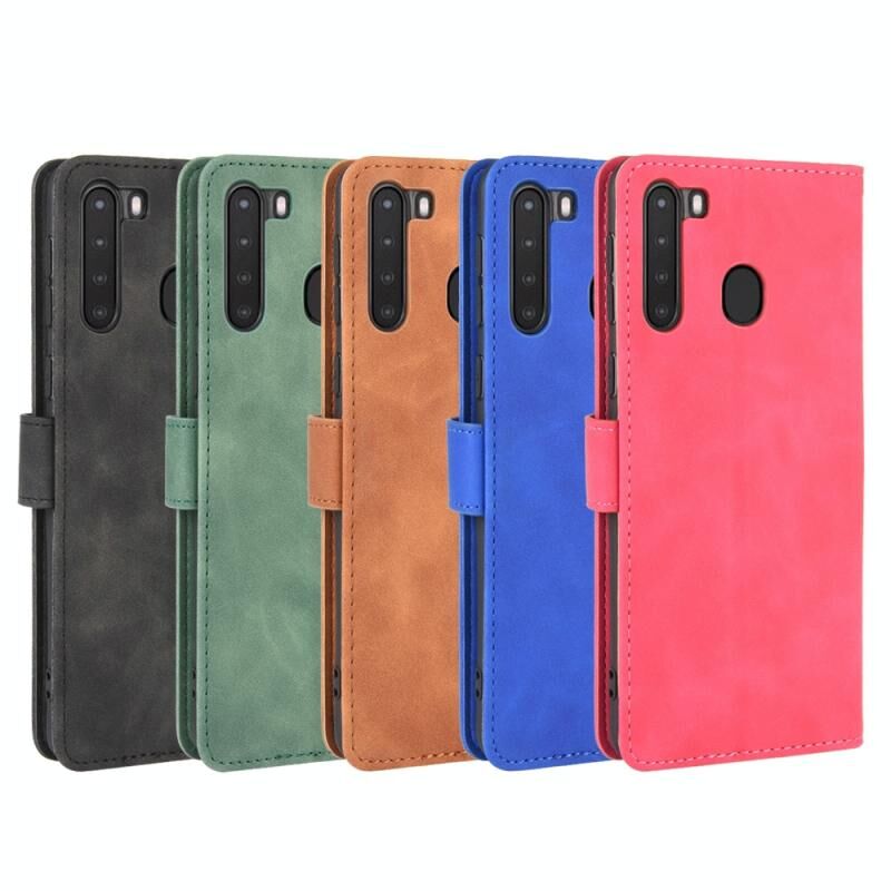 Για Samsung Galaxy A21 (Ευρασιατική έκδοση) Αμιγές χρώμα δέρμα αίσθηση μαγνητική πόρπη οριζόντια Flip μοσχάρι υφή PU δέρμα υπόθεση με κάτοχο & υποδοχές για κάρτες & πορτοφόλι (Μπλε)