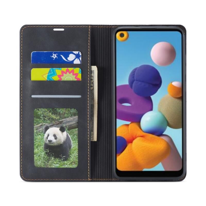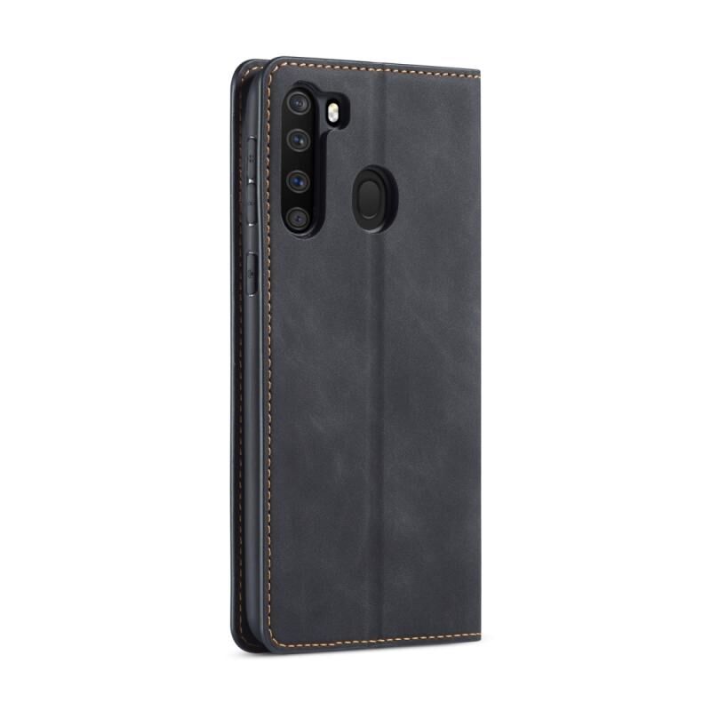 Για Samsung Galaxy A21 Forwenw Dream Series Oil Edge Strong Magnetism Horizontal Flip Leather Case με θήκη & υποδοχές για κάρτες & πορτοφόλι & κορνίζα φωτογραφιών (Μαύρο) (Μαύρο)