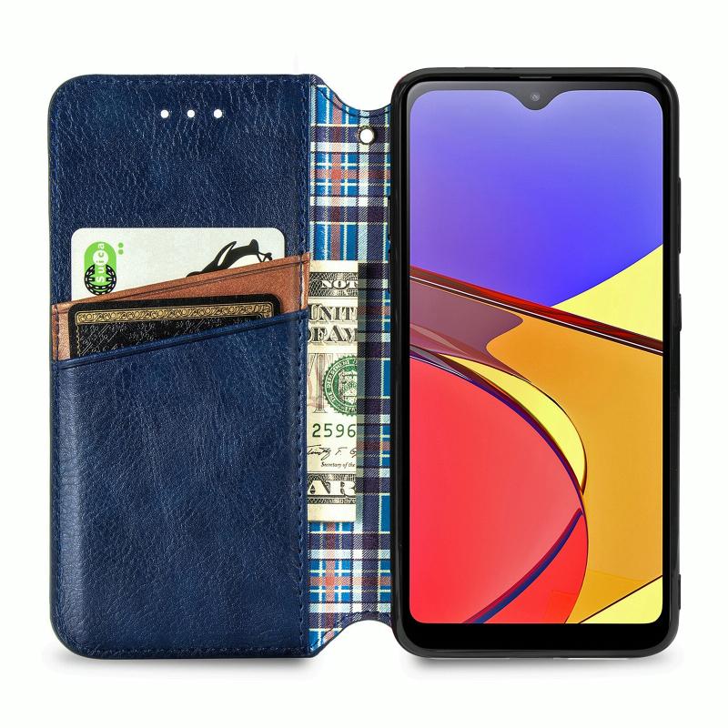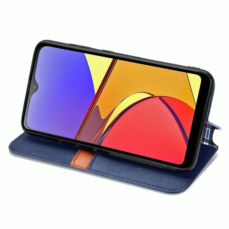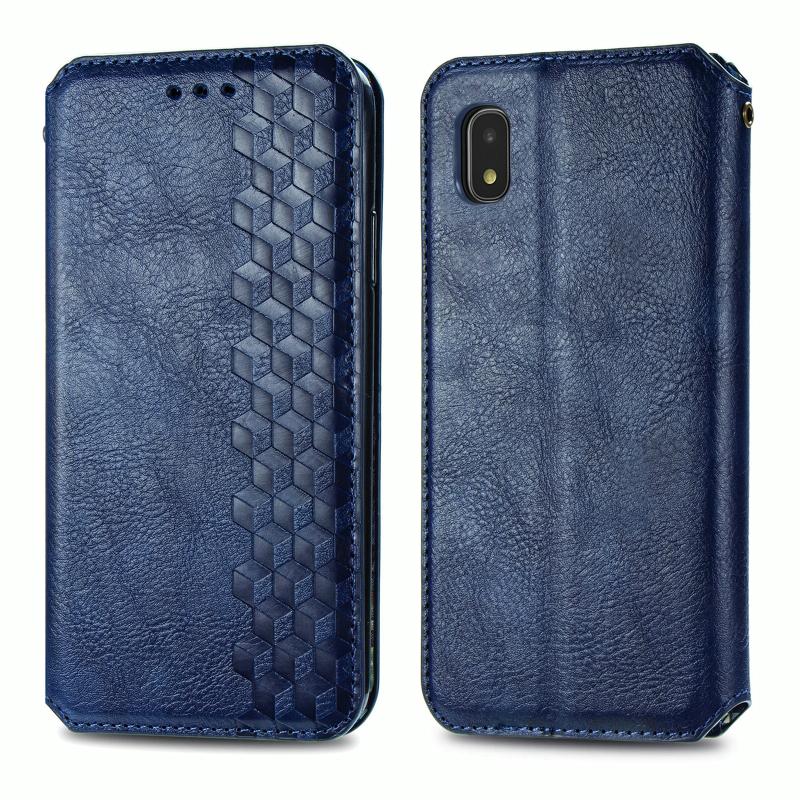 For Samsung Galaxy A21 (JP Version) Cubic Grid Pressed Horizontal Flip Magnetic PU Leather Case with Holder & Card Slots & Wallet(Blue)