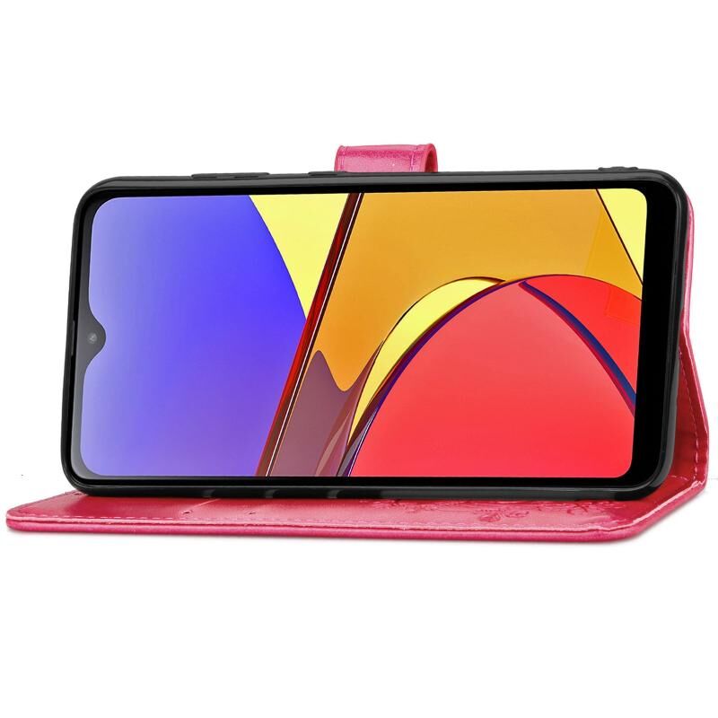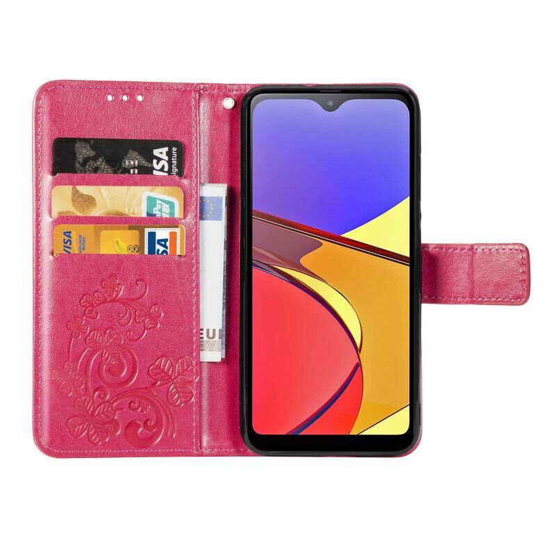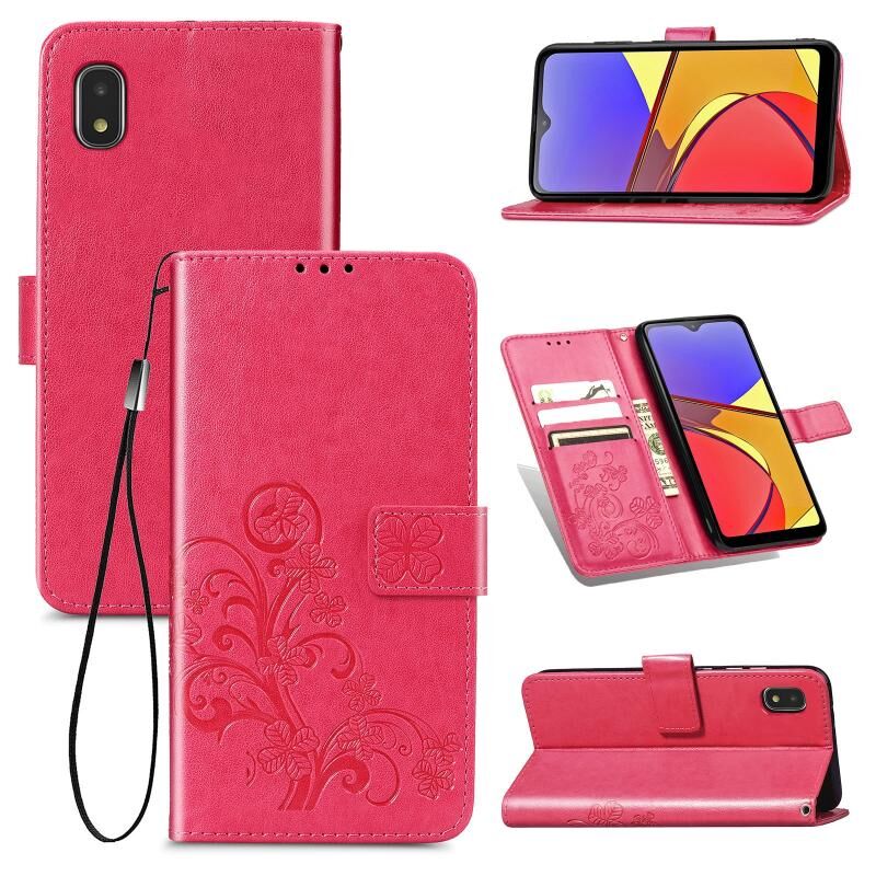 Για Samsung Galaxy A21 (Ιαπωνική Έκδοση) Θήκη Προστασίας Δερμάτινη για Κινητό με Κούμπωμα Τριφύλλι, Ραφτό, με Λουρί, Θήκη Καρτών, Πορτοφόλι & Λειτουργία Στήριξης (ματζέντα)
