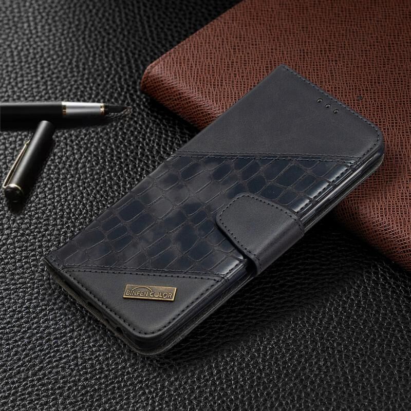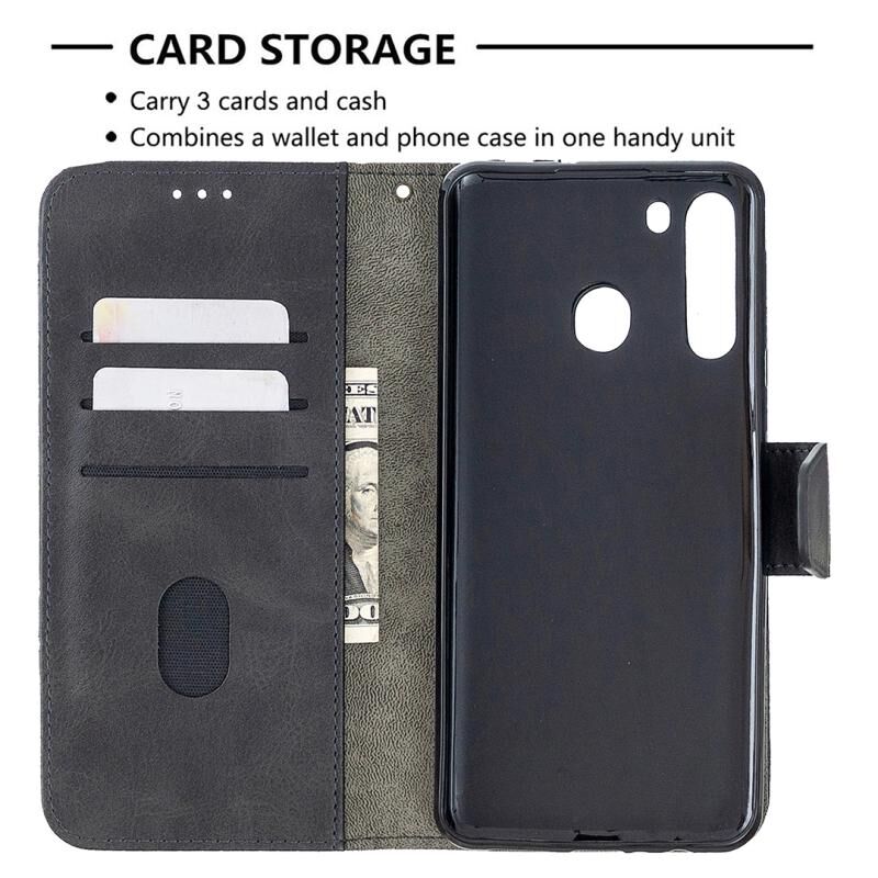 Θήκη Samsung Galaxy A21, Οριζόντια, Δερμάτινη PU με Υφή Κροκόδειλου, σε Αντίστοιχο Χρώμα, με Θήκη Πορτοφολιού, Στήριξη & Θήκες Καρτών (Μαύρο)