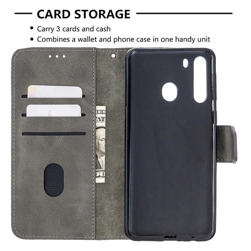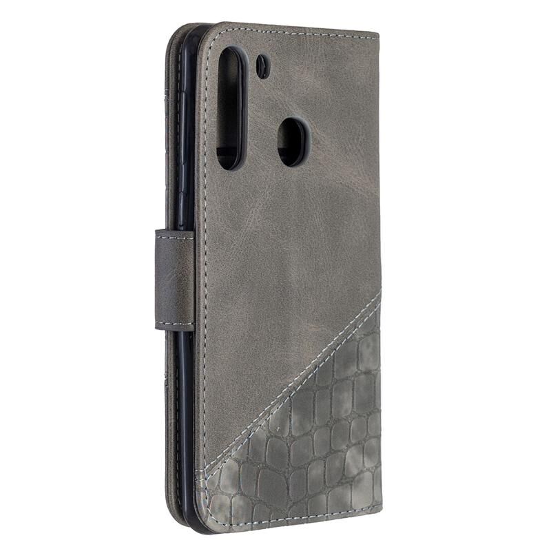 Θήκη Samsung Galaxy A21, Οριζόντια, Δερμάτινη PU με Υφή Κροκόδειλου, σε Αντίστοιχο Χρώμα, με Θήκη Πορτοφολιού, Στήριξη & Θήκες Καρτών (Γκρι)