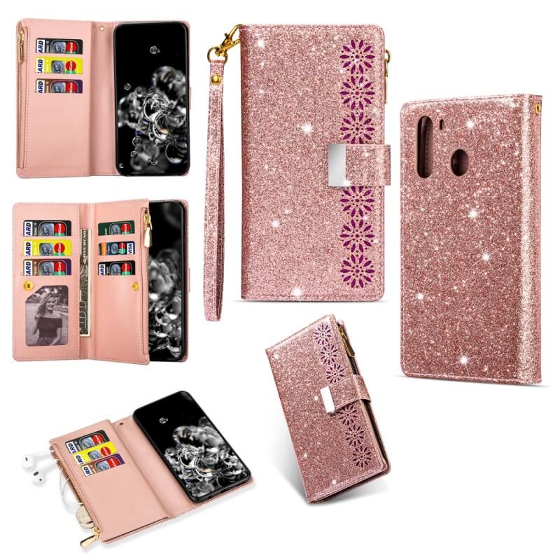 Θήκη Samsung Galaxy A21 με πολλαπλές θήκες καρτών, Laser Carving Starry Sky, Glitter, οριζόντια, δερμάτινη με βάση στήριξης, πορτοφόλι & λουρί (Μωβ)