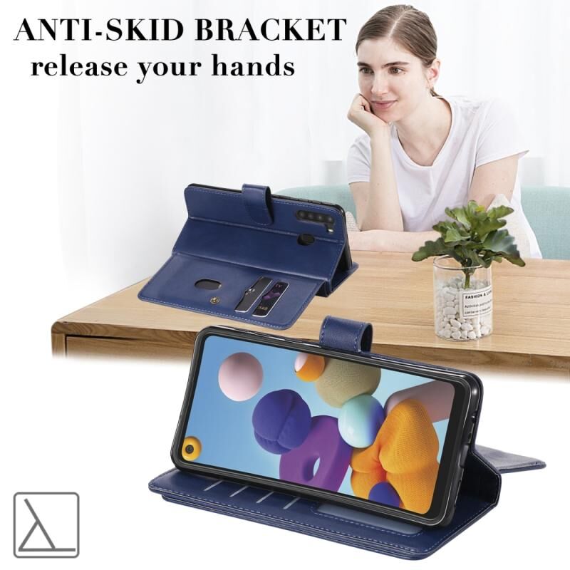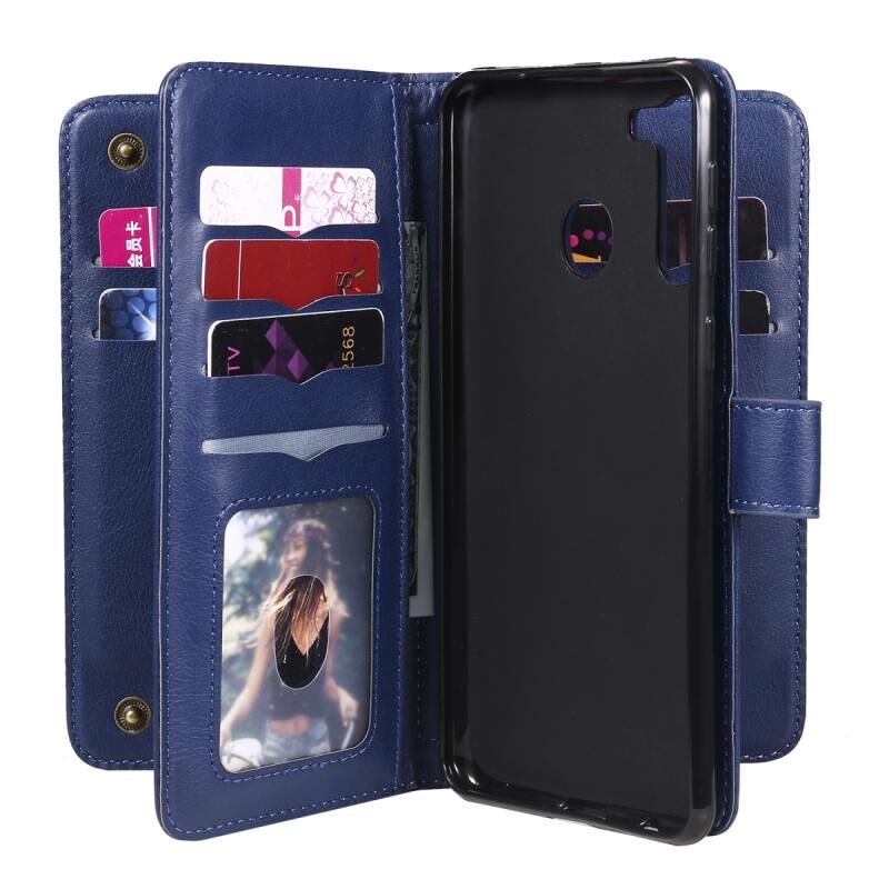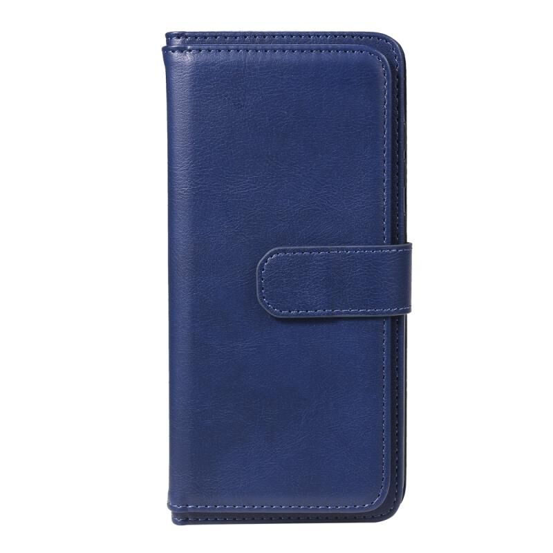Για Samsung Galaxy A21 Πολυλειτουργική μαγνητική χάλκινη πόρπη οριζόντια Flip αμιγές χρώμα δερμάτινη θήκη με 10 υποδοχές για κάρτες & πορτοφόλι & κάτοχος & κορνίζα φωτογραφιών (σκούρο μπλε)