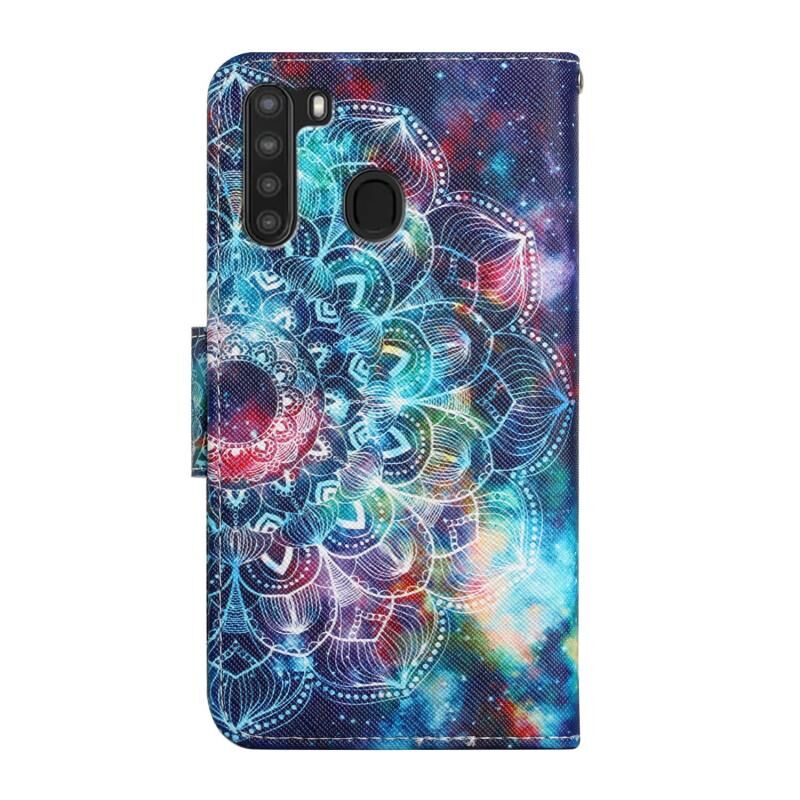 Θήκη Samsung Galaxy A21 από Δέρμα με Οριζόντιο Άνοιγμα, Βαμμένο Μοτίβο, με Θήκη & Υποδοχή Κάρτας & Πορτοφόλι (Starry Mandala)
