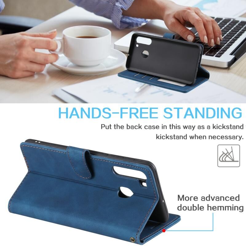 Για Samsung Galaxy A21 δέρμα αίσθηση Anti-theft βούρτσα οριζόντια Flip δέρμα τηλέφωνο υπόθεση (μπλε)