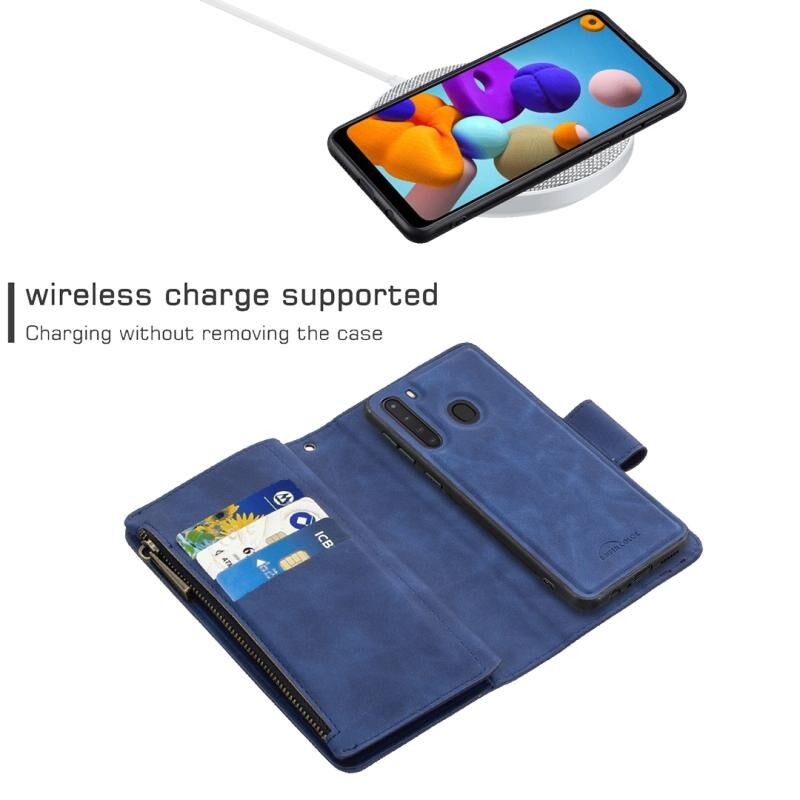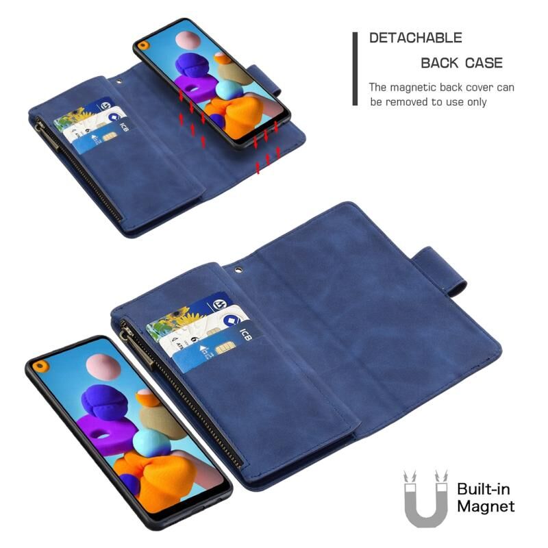 Για Samsung Galaxy A21 Skin Feel Αποσπώμενο μαγνητικό φερμουάρ Οριζόντια Flip PU δερμάτινη θήκη με υποδοχές για πολλαπλές κάρτες & θήκη & πορτοφόλι & κορνίζα & κορδόνι (Μπλε)