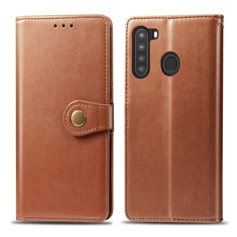 Για το Samsung Galaxy A21 U.S. Edition Retro Solid Color Δερμάτινη θήκη τηλεφώνου με αγκράφα & κορνίζα φωτογραφιών & υποδοχή κάρτας & πορτοφόλι & λειτουργία stand (Καφέ)