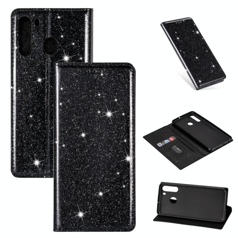 Για Samsung Galaxy A21 Ultrathin Glitter μαγνητική οριζόντια Flip δερμάτινη θήκη με θήκη & υποδοχές για κάρτες (Μαύρο)