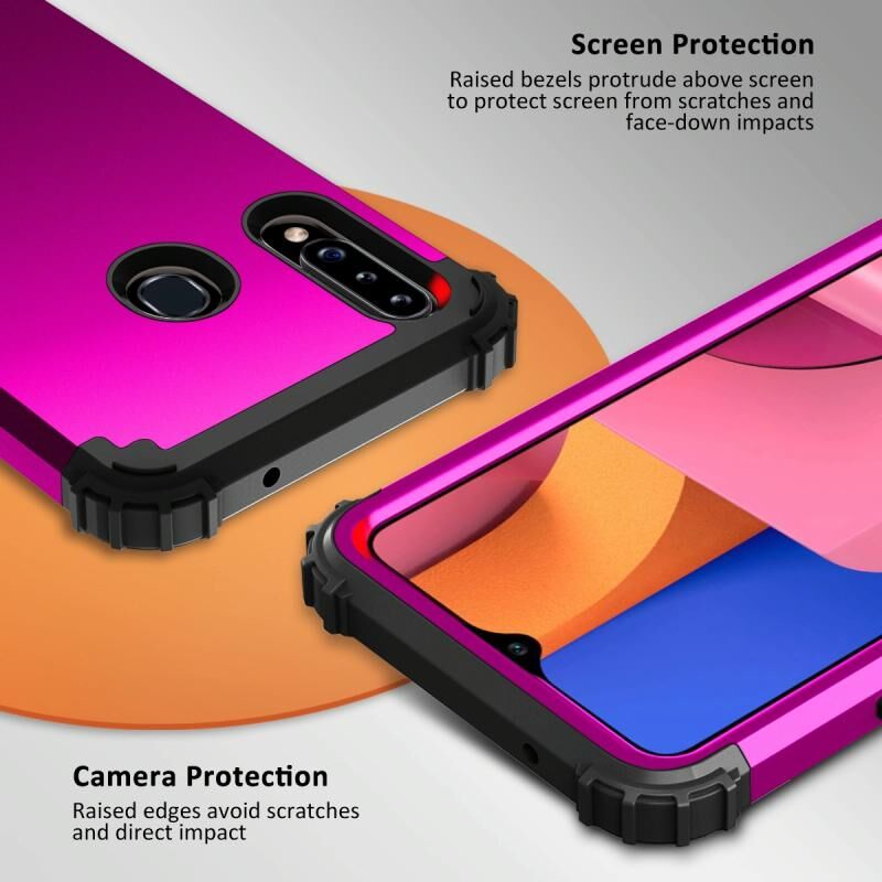 1. Το προϊόν αποτελείται από τρία στρώματα. Το ανώτερο στρώμα είναι το πλαίσιο PC για την προστασία της άκρης του κινητού τηλεφώνου. Το μεσαίο είναι κατασκευασμένο από σιλικόνη για να προστατεύει το πίσω κάλυμμα του κινητού τηλεφώνου από τη φθορά. Το κάτω στρώμα είναι η σκληρή θήκη από PC με λειτουργία κατά της πτώσης.