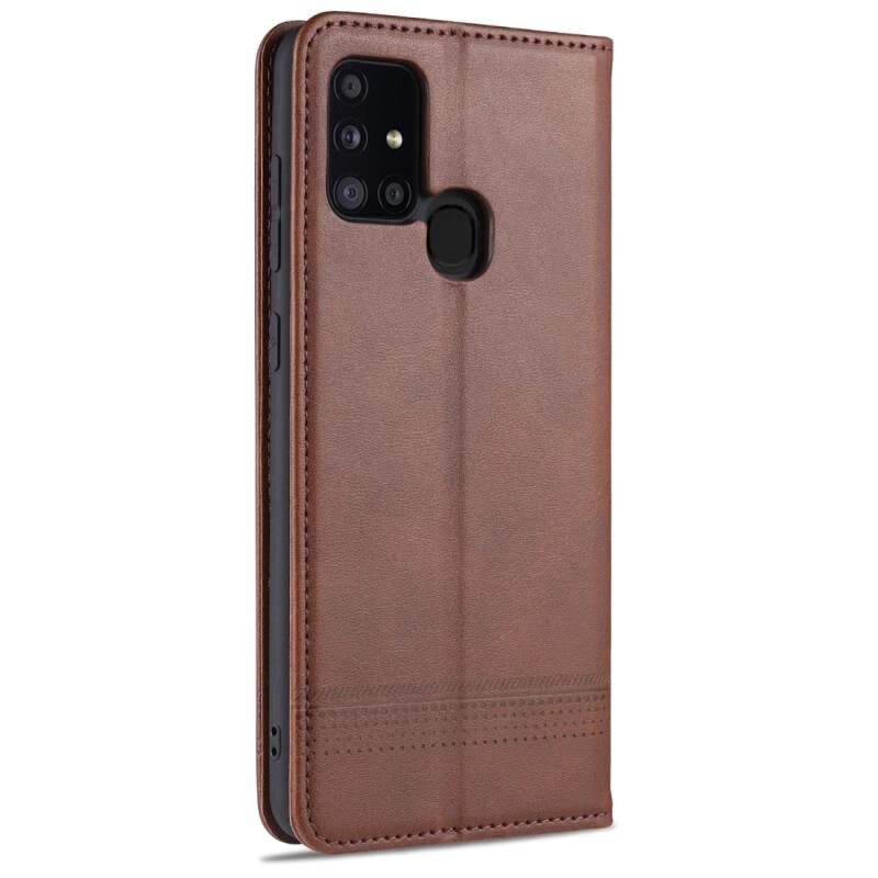 Θήκη Samsung Galaxy A21s AZNS Μαγνητική Δερμάτινη Οριζόντια με Υφή Μοσχαριού, με Θήκες Καρτών & Στήριξη & Πορτοφόλι (Σκούρο Καφέ) (AZNS)