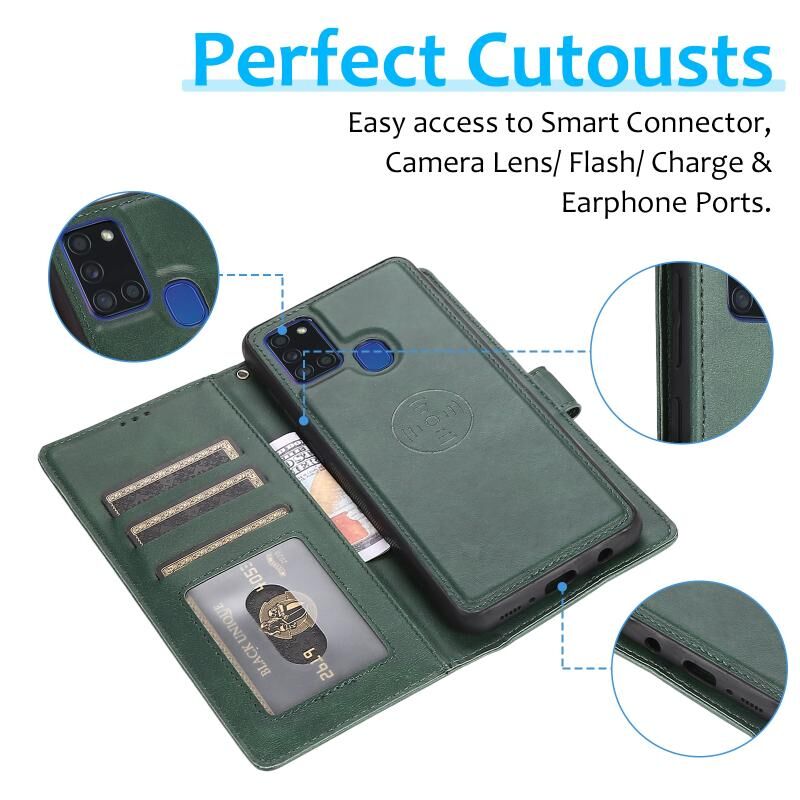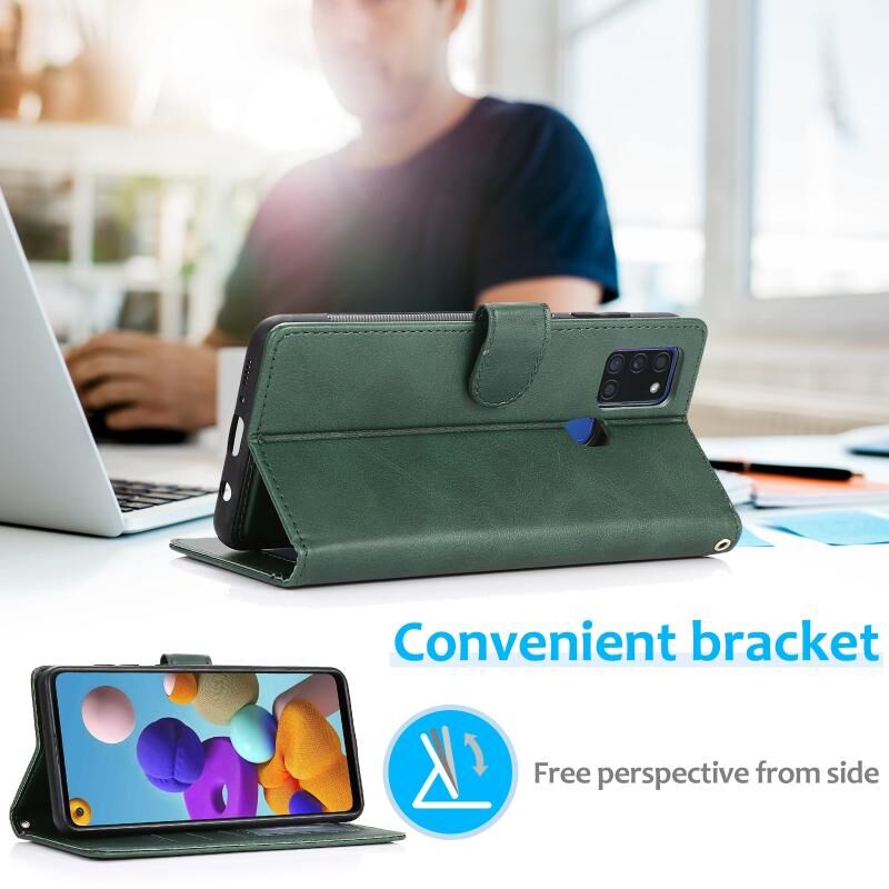Για Samsung Galaxy A21s Calf Texture 2 σε 1 Αποσπώμενο μαγνητικό πίσω κάλυμμα Οριζόντια Flip δερμάτινη θήκη με θήκη & υποδοχές για κάρτες & πορτοφόλι & κορνίζα φωτογραφιών (πράσινο)
