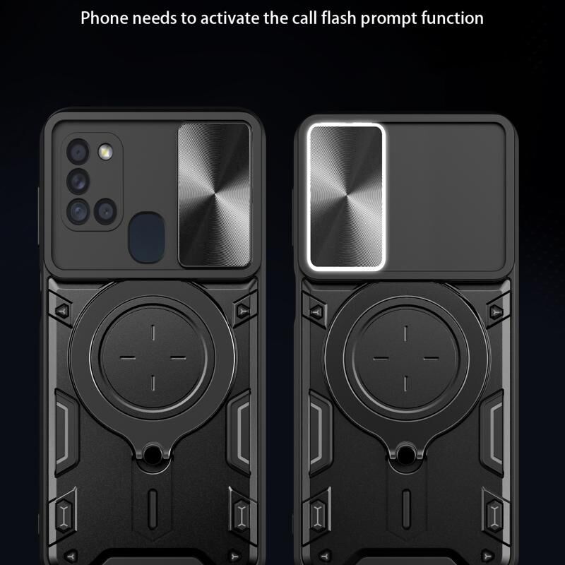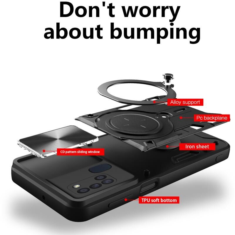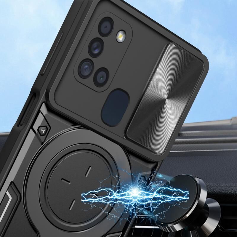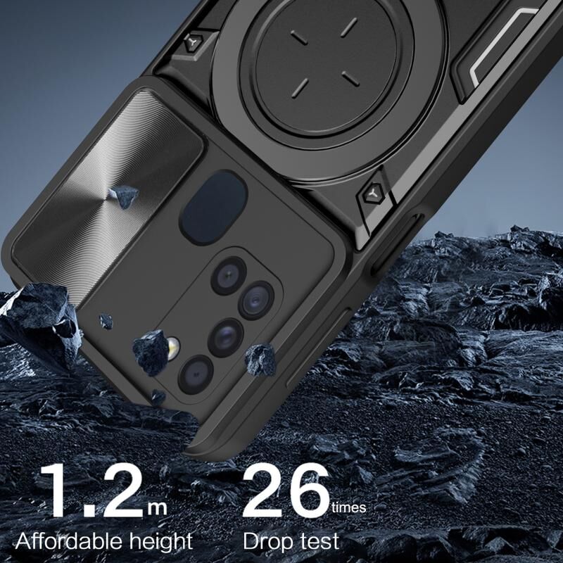 Θήκη κινητού τηλεφώνου για Samsung Galaxy A21s με υφή CD, συρόμενο προστατευτικό κάμερας και μαγνητική βάση (Ροζ)