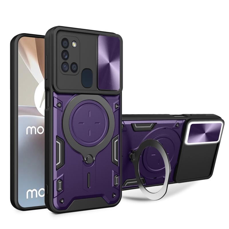 Θήκη κινητού τηλεφώνου για Samsung Galaxy A21s με υφή CD, συρόμενο προστατευτικό κάμερας και μαγνητική βάση (Ροζ)