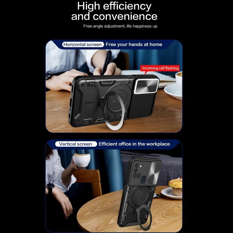 Θήκη κινητού τηλεφώνου για Samsung Galaxy A21s με υφή CD, συρόμενο προστατευτικό κάμερας και μαγνητική βάση (Ροζ)