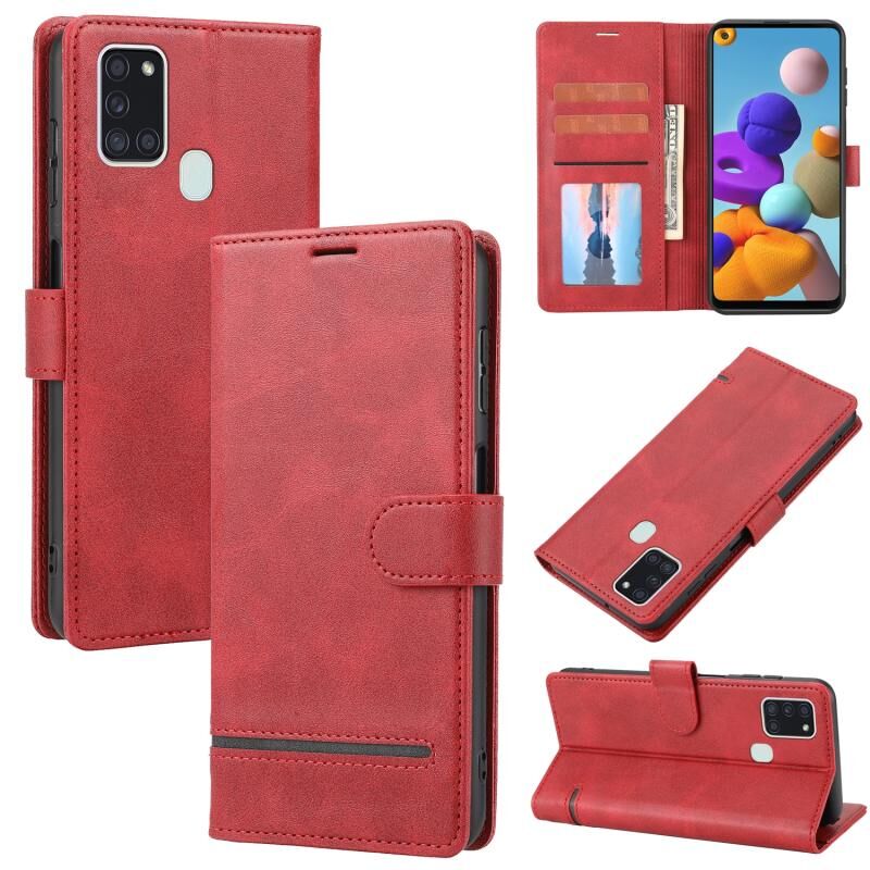 Για Samsung Galaxy A21s Κλασικό πορτοφόλι Flip δερμάτινη θήκη τηλεφώνου (κόκκινο)